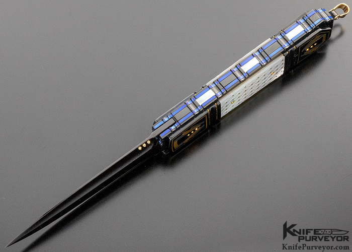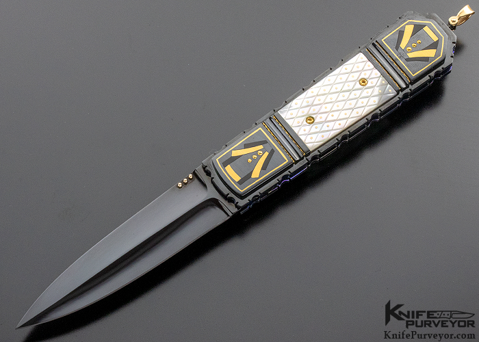Jim Minnick Custom Knife Piqued Mother of Pearl Shell w/ 24 Kt. Gold Inlays