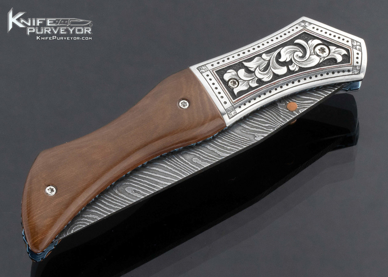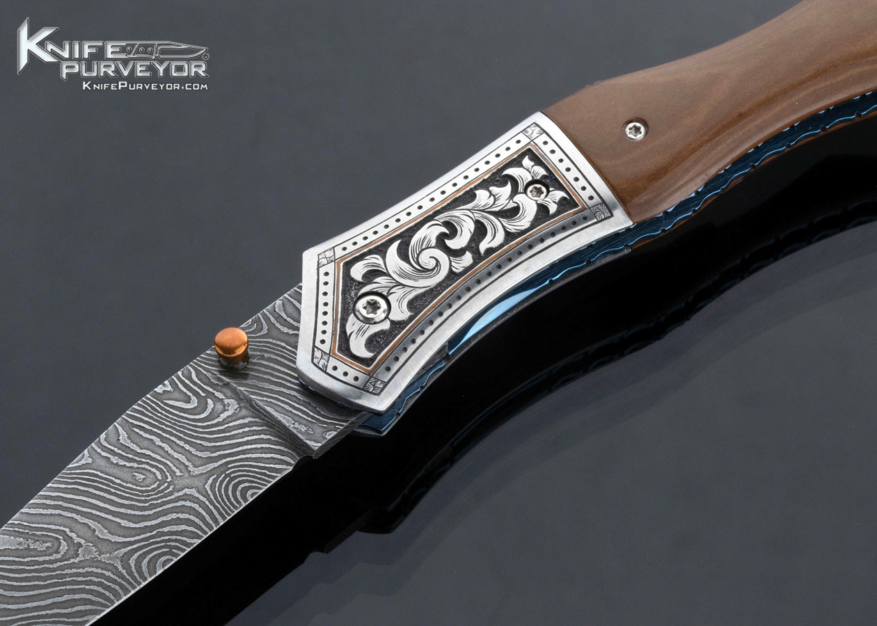 Jody Muller Custom Knife Sole Authorship Damascus and Engraved Linerlock
