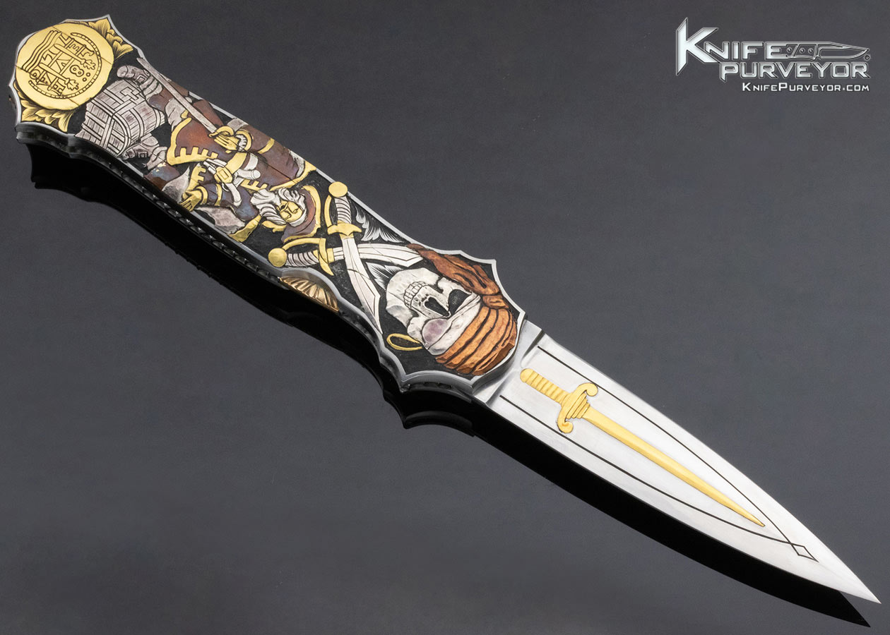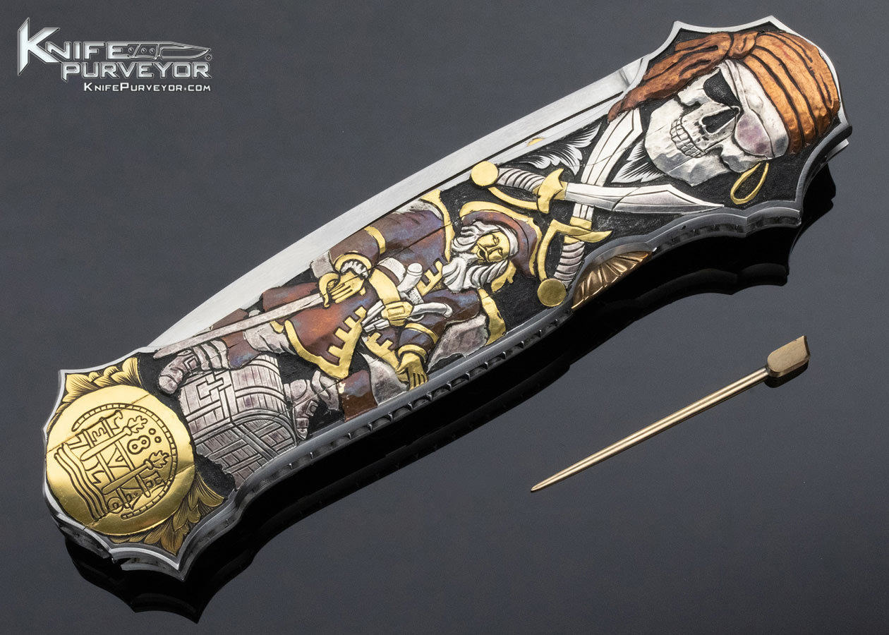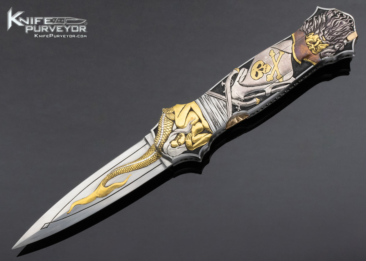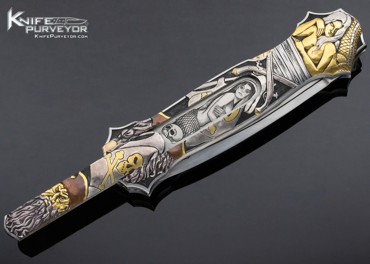 Joe Kious Custom Knife Ron Skaggs Engraved Pirate Mermaid Motif Double Pocket Locket Automatic Lockback