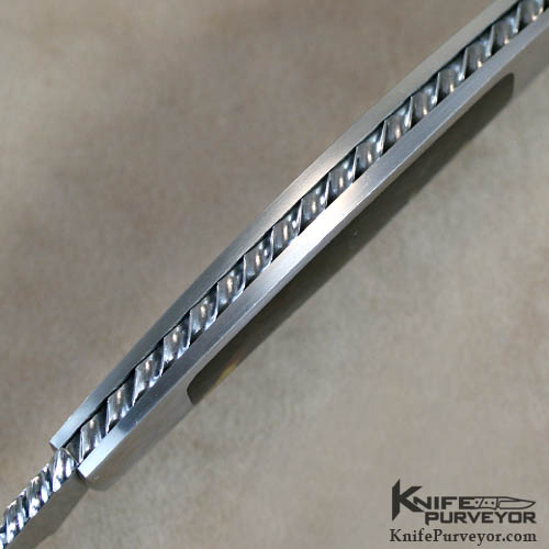 Joe Kious has finished the knife with his signature rope pattern fileworked along the spine of this handsome gent's folder.