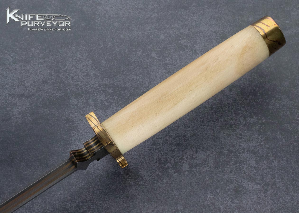 Joel Ellefson Custom Knife Polished Rocky Mountain Big Horn Sheep Horn with Multi Layered Brass and Steel Blade Dagger