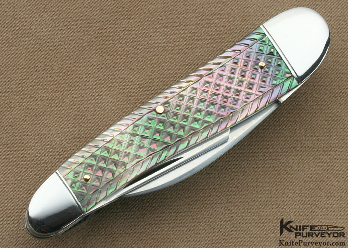 Joel Chamblin Custom Knife 3 Blade Piqued Black Lip Tahitian Pearl Shell “Serpentine Whittler” Slip Joint