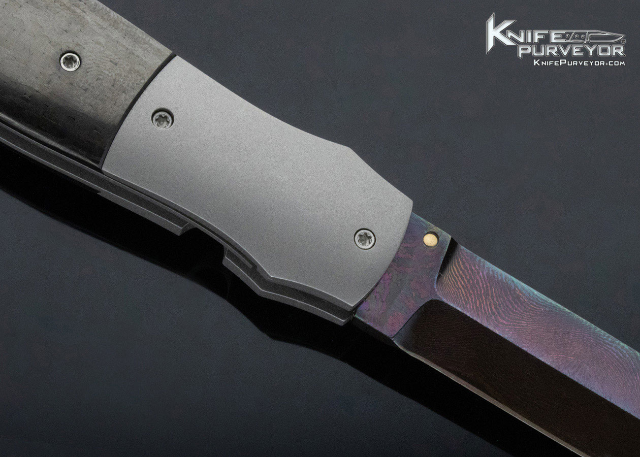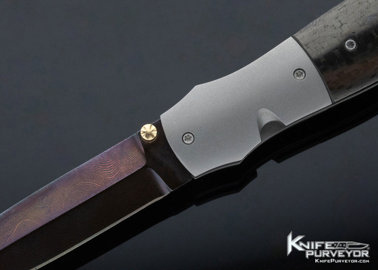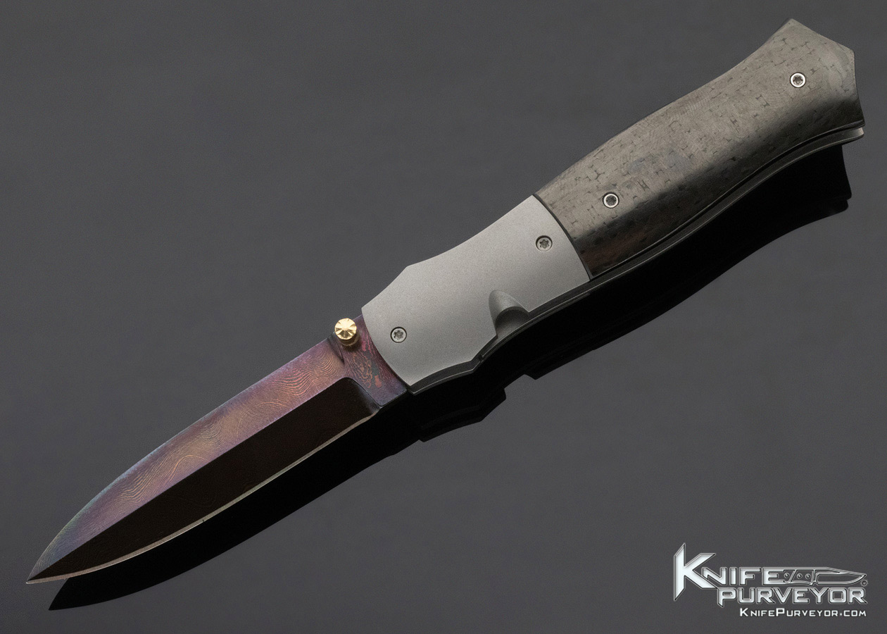 John W. Smith Custom Knife Blued Damascus & Carbon Fiber Linerlock Dagger