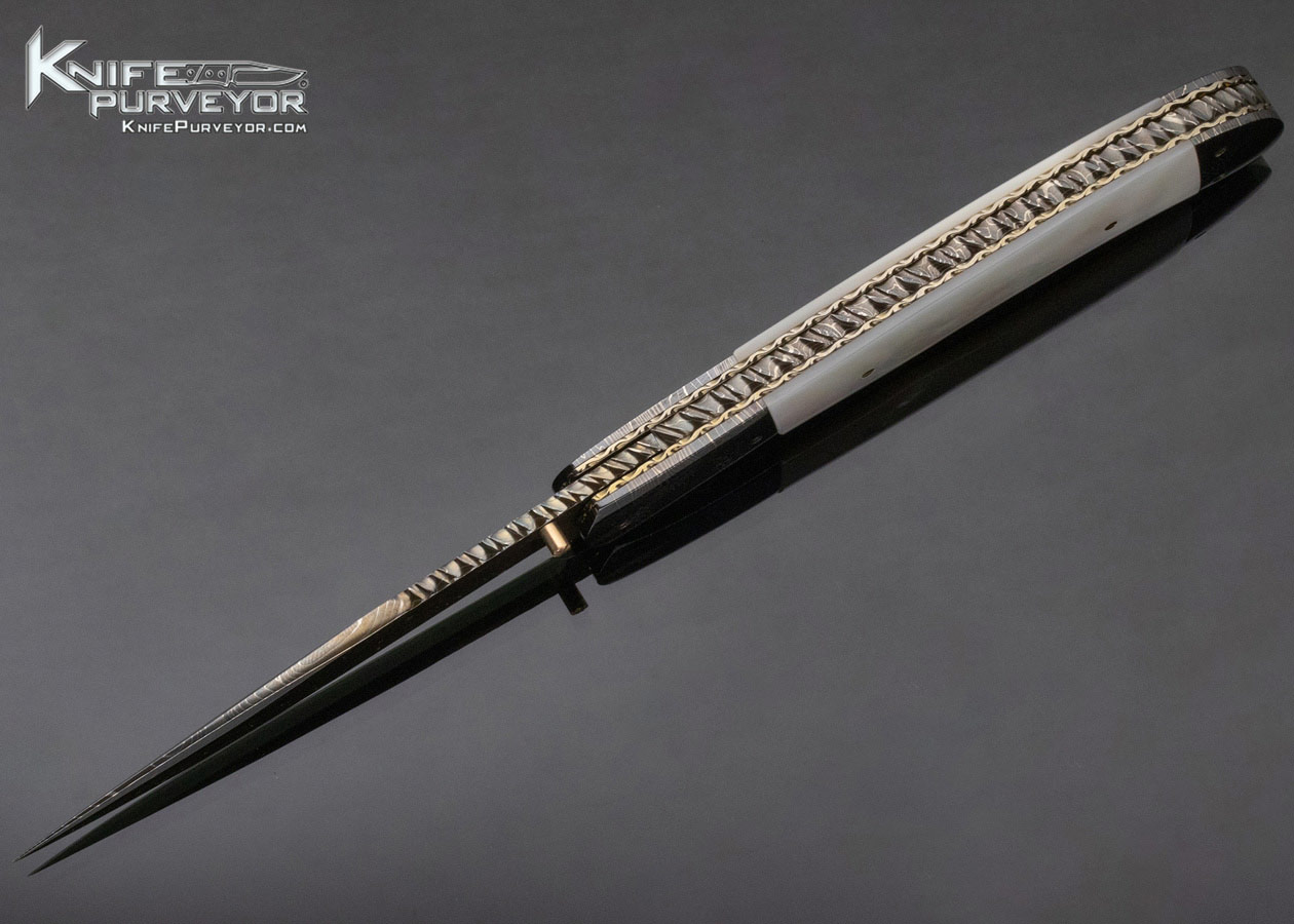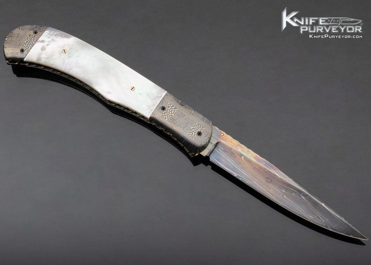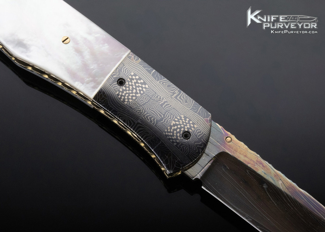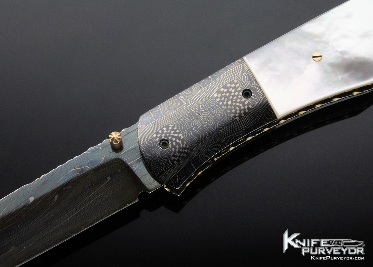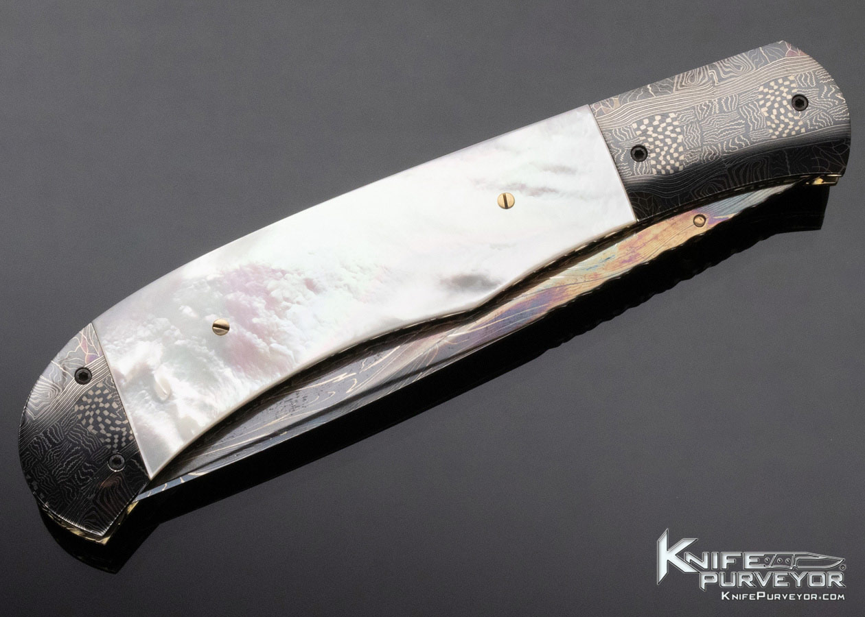 John W. Smith Custom Knife Mother of Pearl & Damascus Linerlock