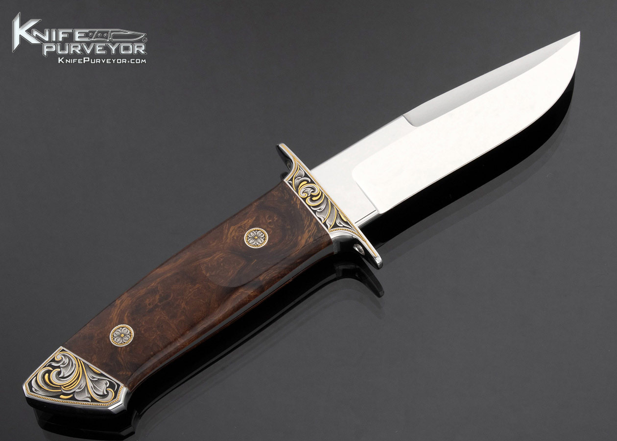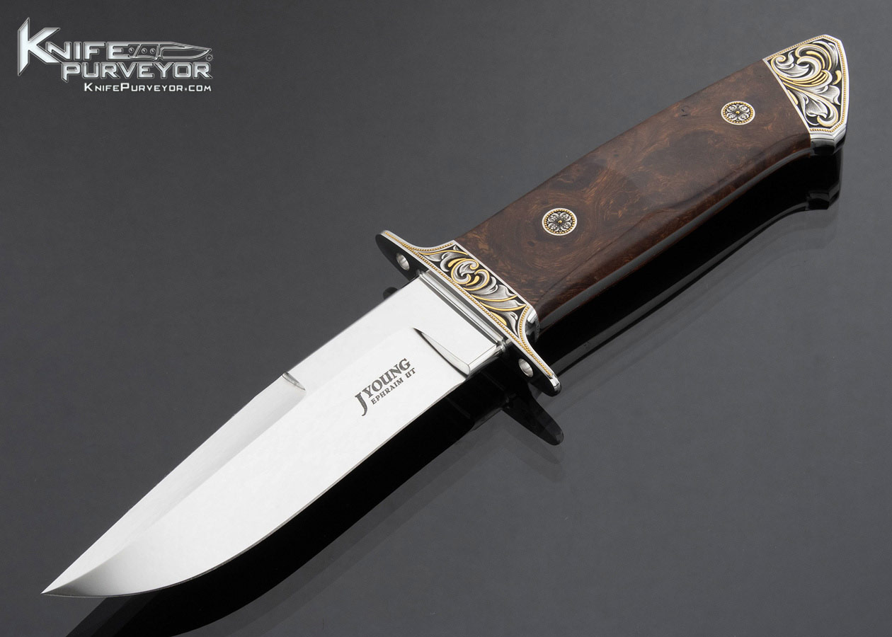 John Young Custom Knife Engraved by Julie Warenski Desert Ironwood Chute