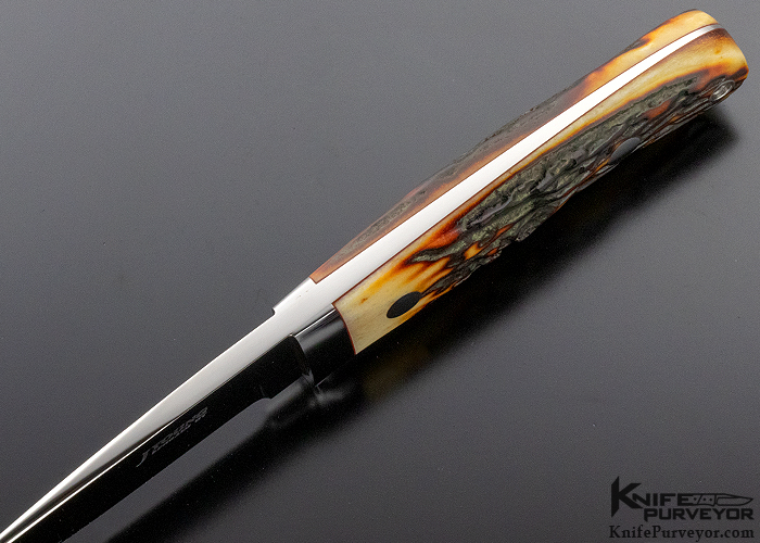 John Young Custom Knife Small Drop Point Hunter with Amber Stag