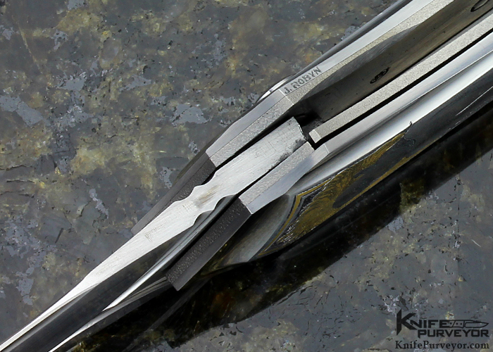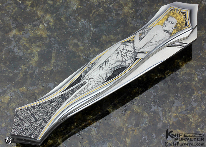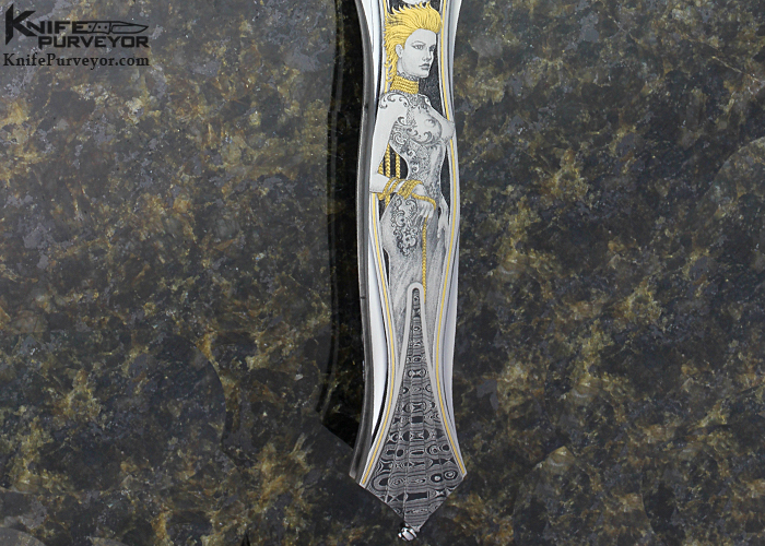 Mathew Lerch Custom Knife Engraved by Jon Robyn with Carved Damascus and 24Kt Gold Inlays Linerlock