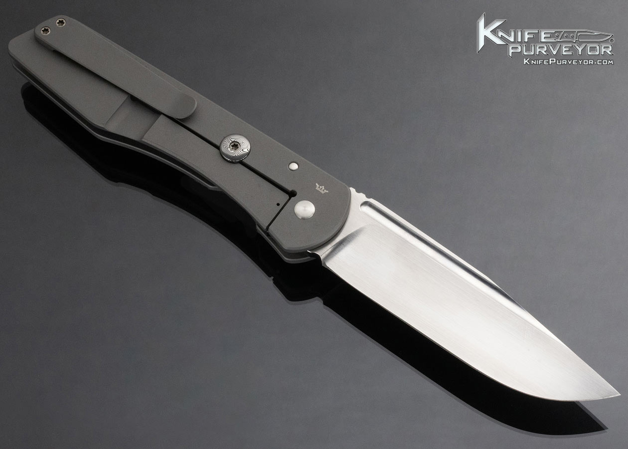 Juergen Schanz Custom Knife Hand Rubbed Satin Finished RWL-34 and Titanium Framelock with Titanium Clip