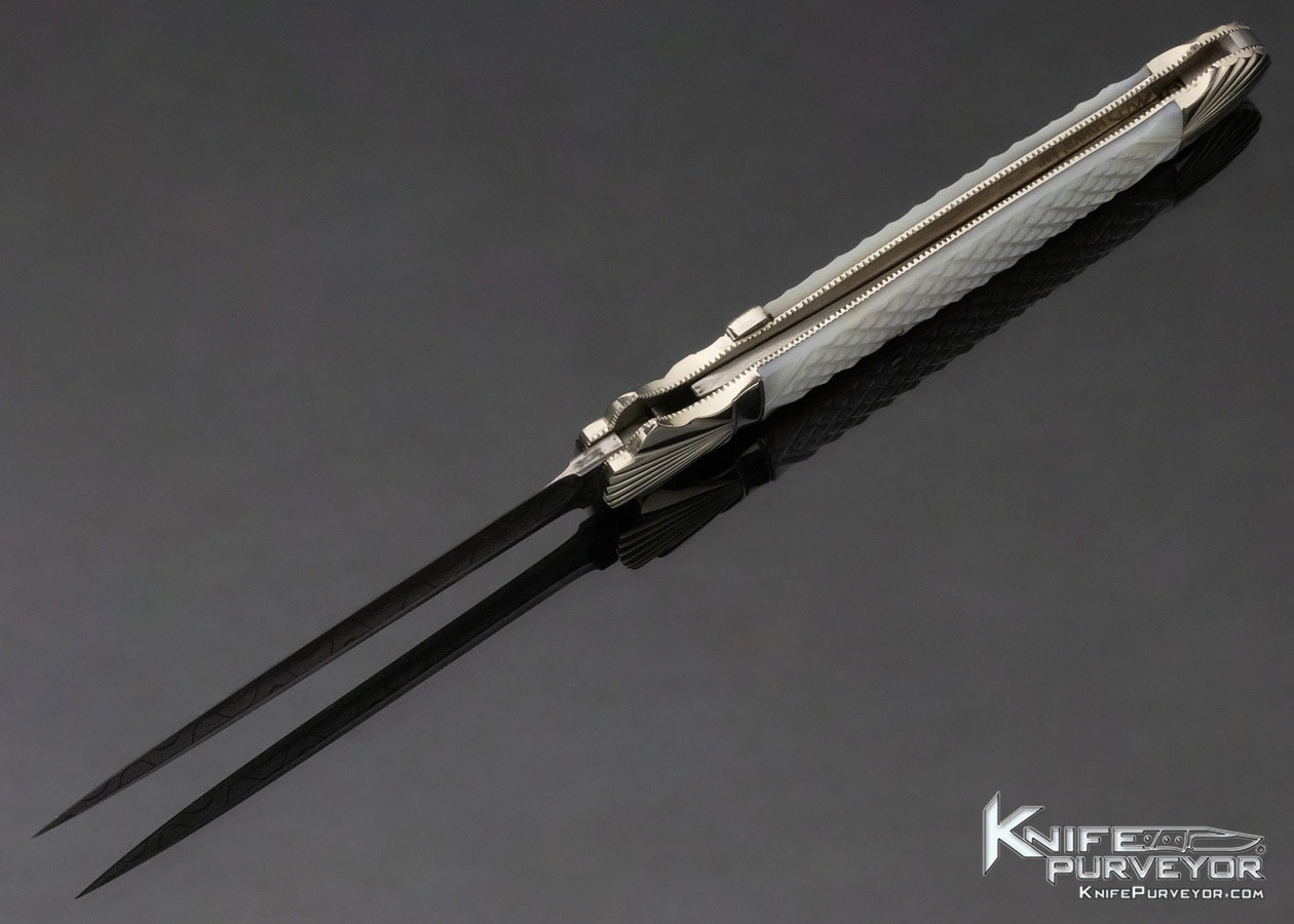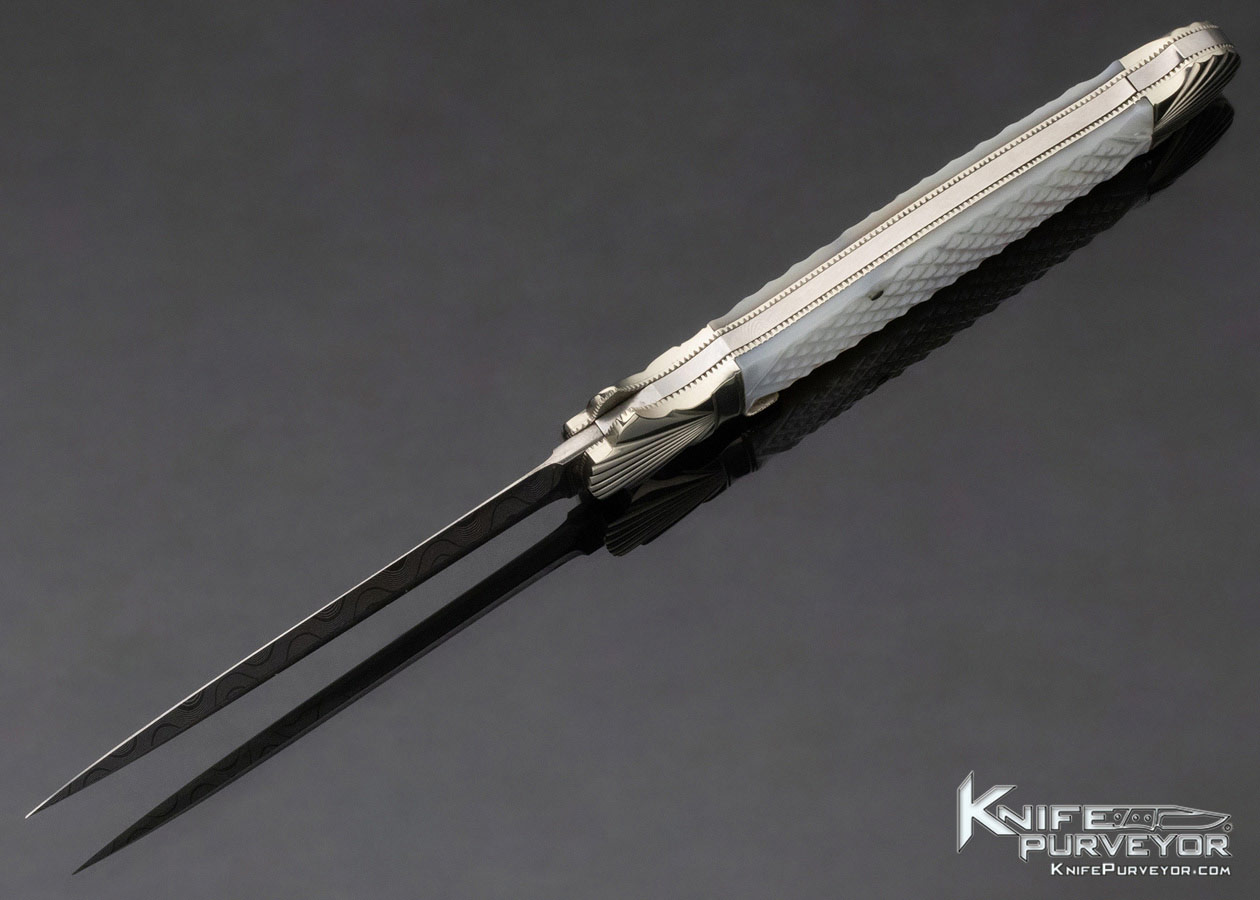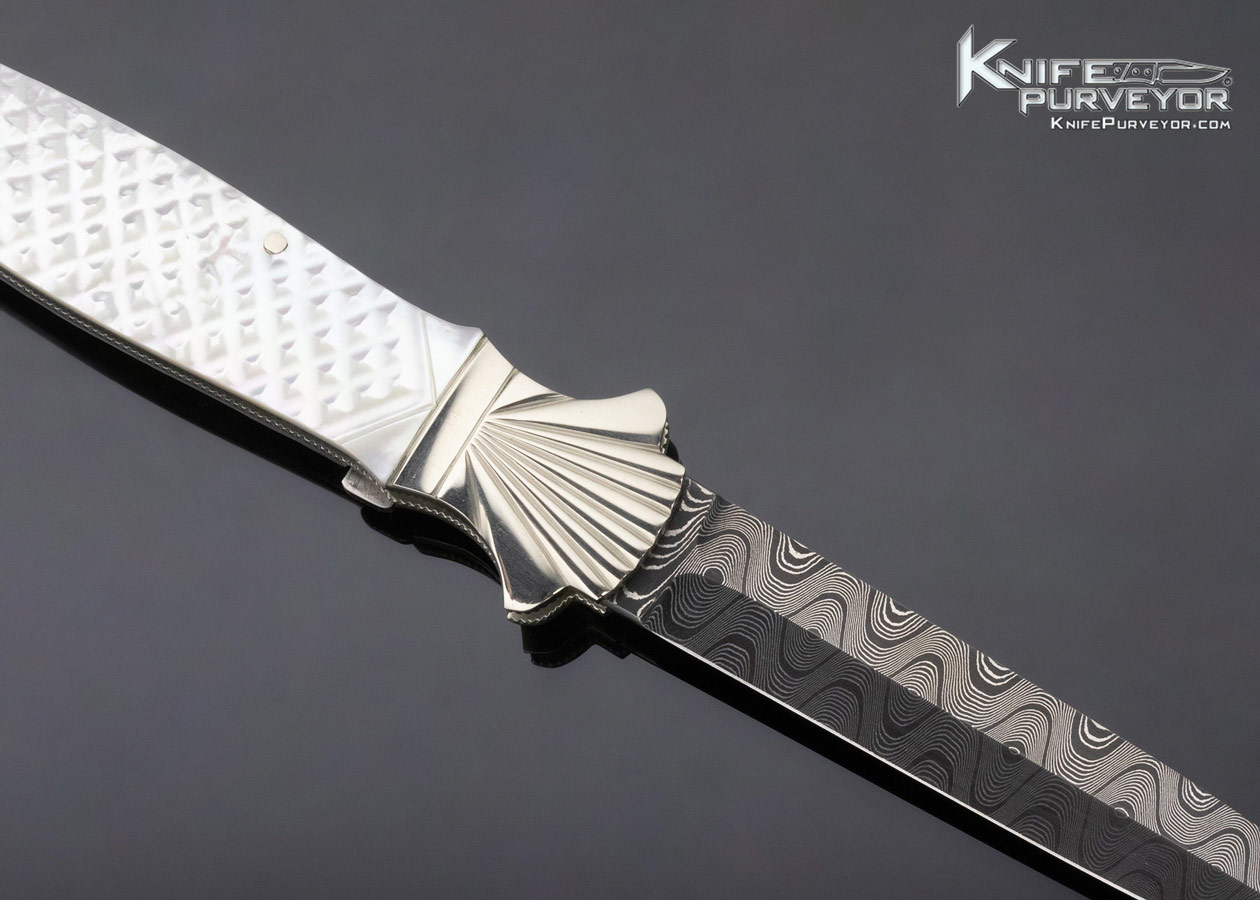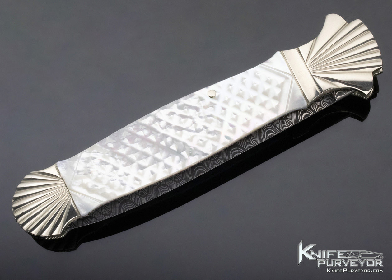 Ken Steigerwalt Custom Knife Damascus and Mother of Pearl Lever Release Automatic