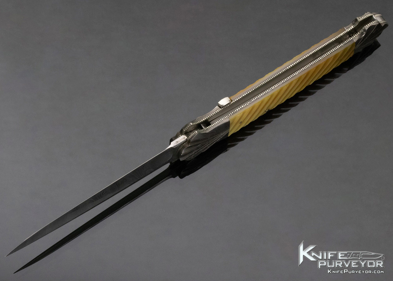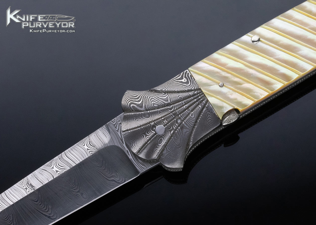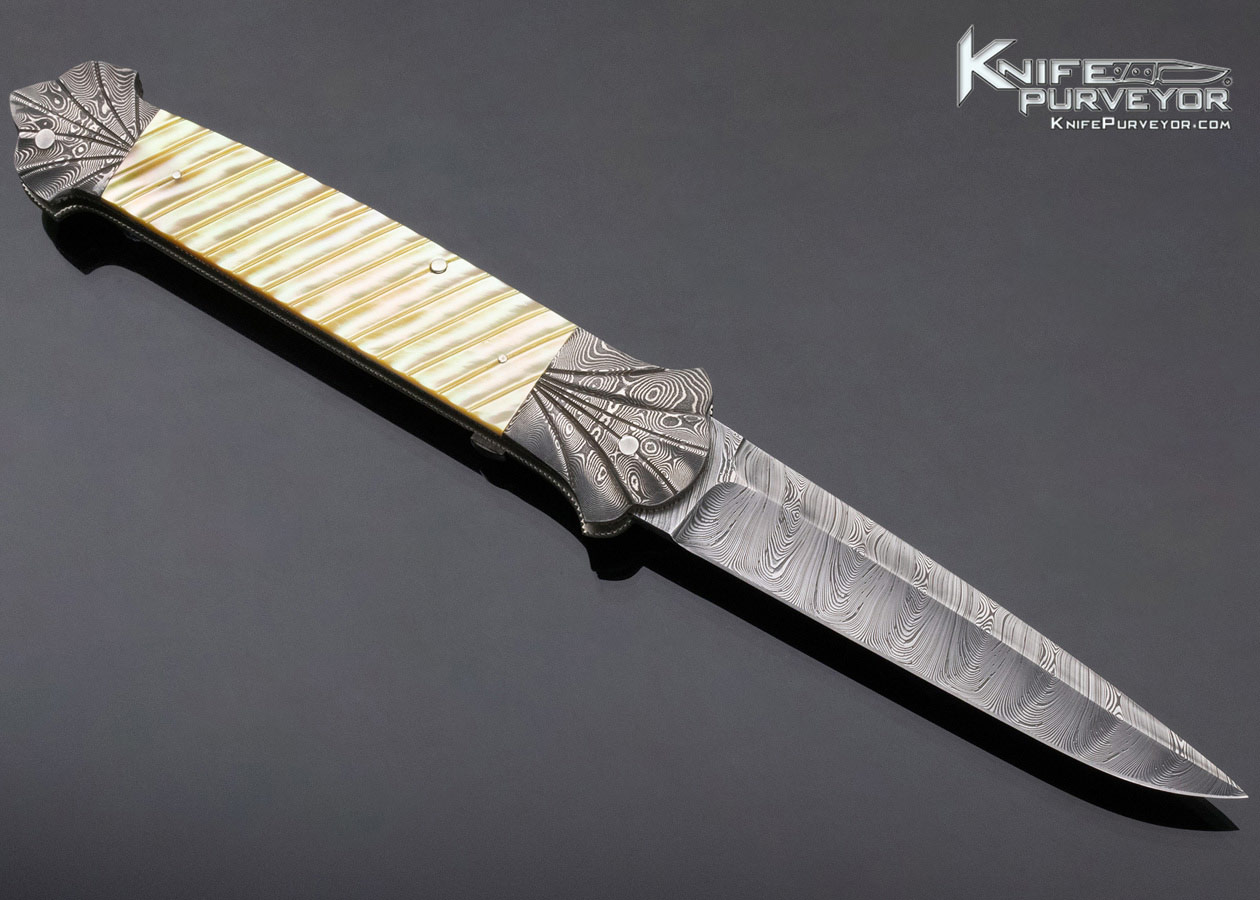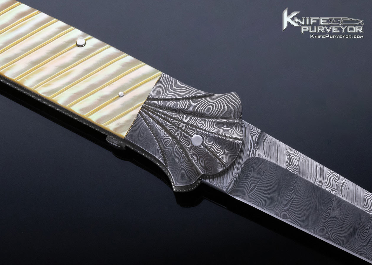 Ken Steigerwalt Custom Knife Damascus and Gold Lip Pearl Lever Release Automatic