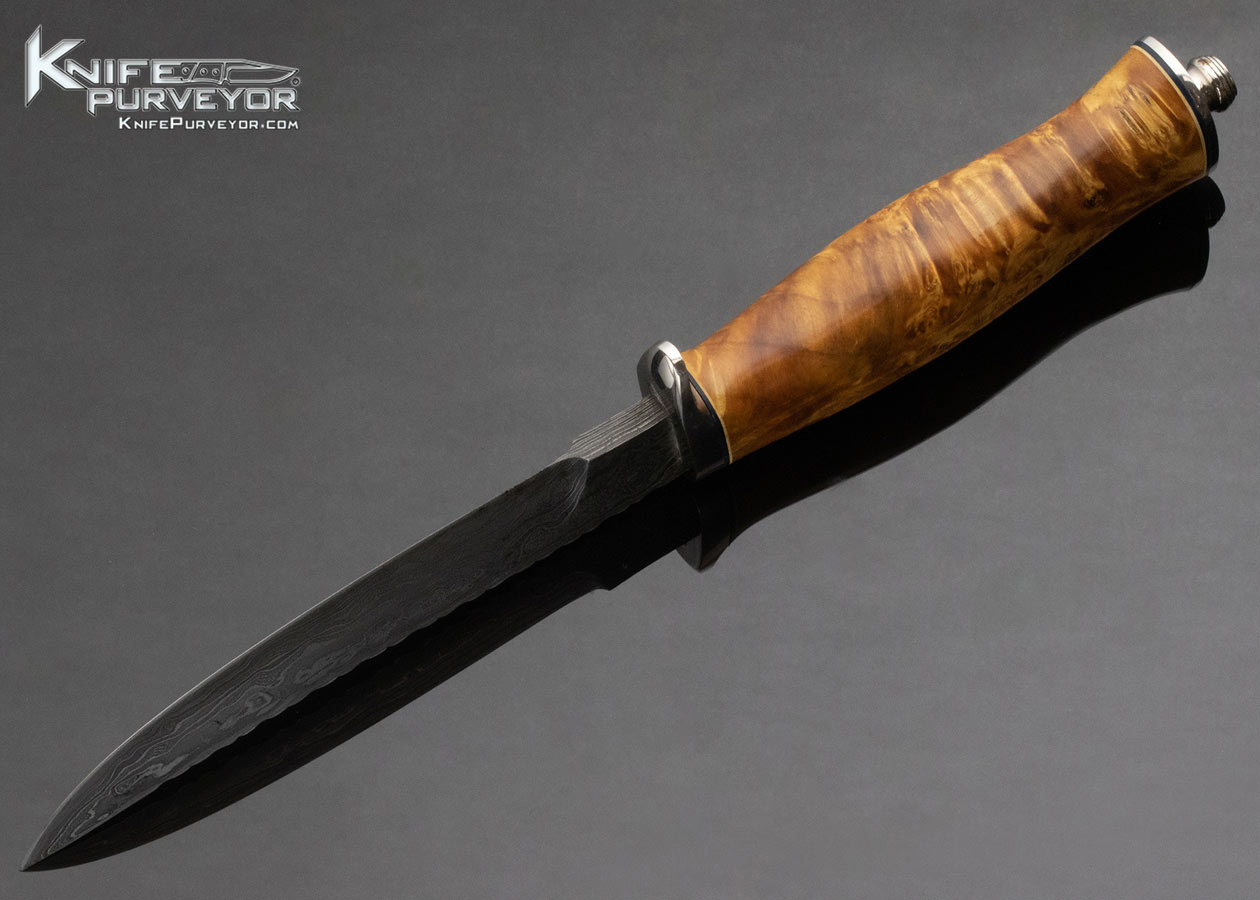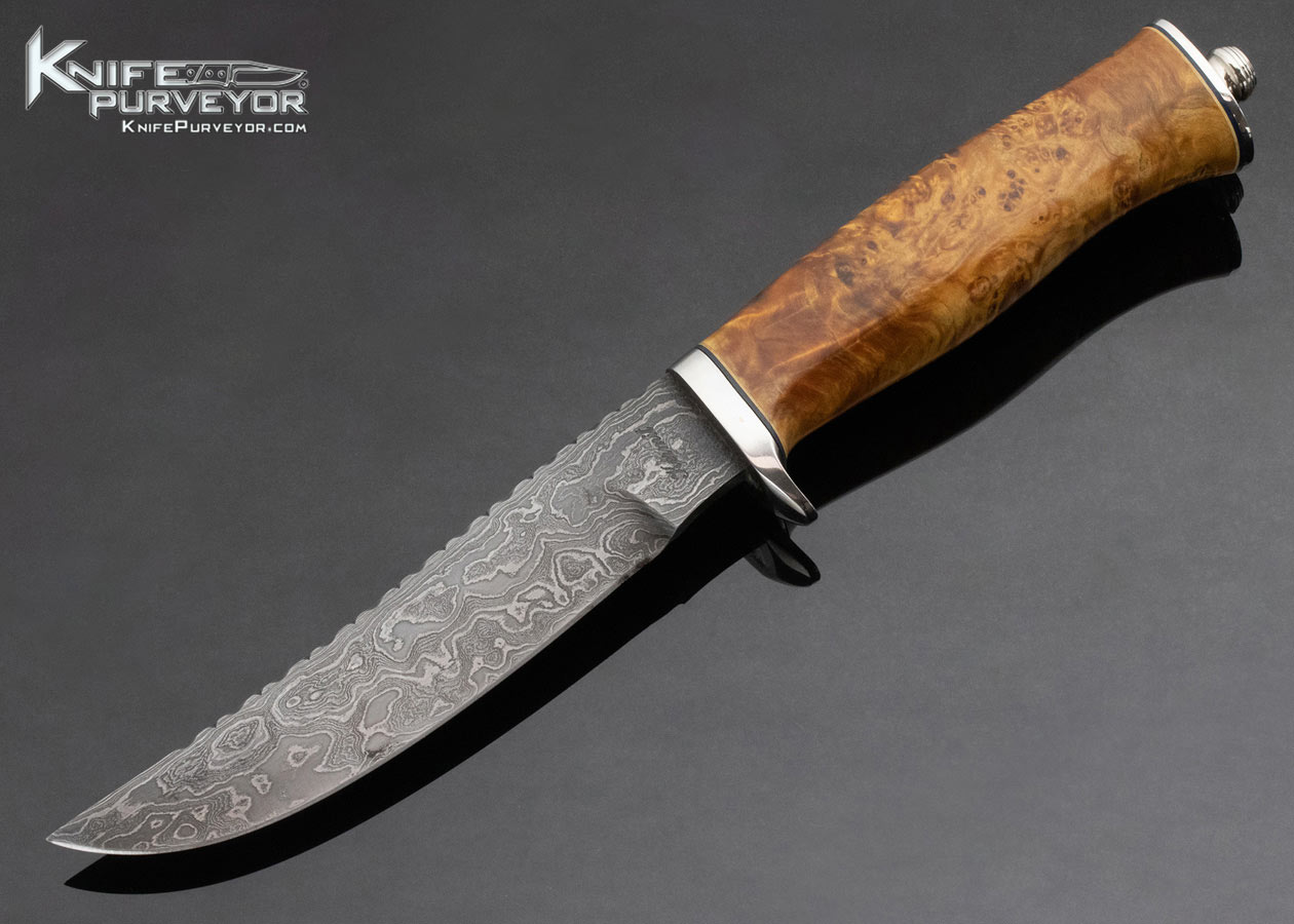 Kermit Laurent Custom Knife Burl Wood and Damascus Fixed Blade