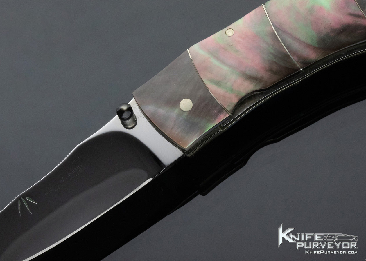 Koji Hara Custom Knife Black Lip Pearl “Bamboo” Linerlock
