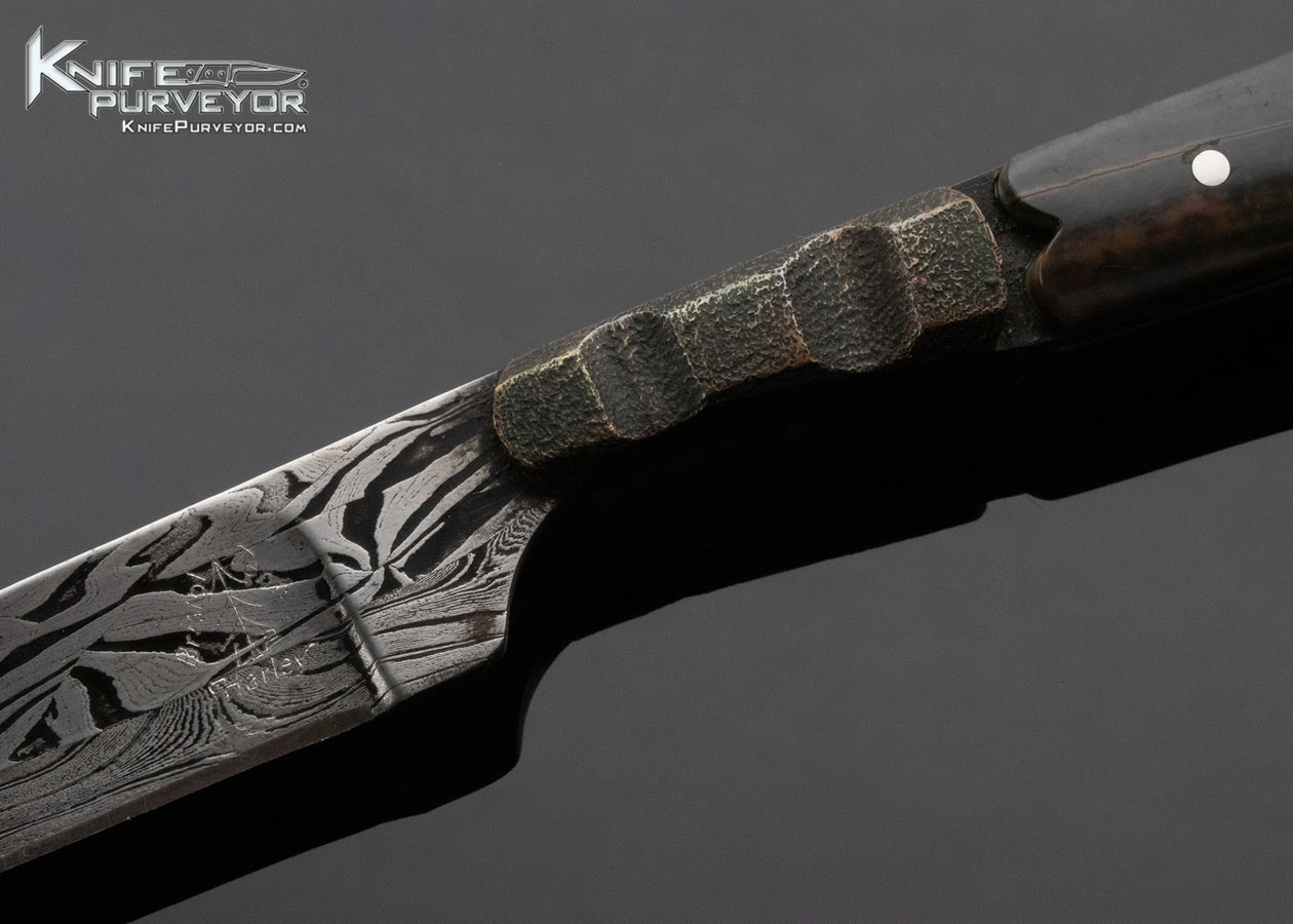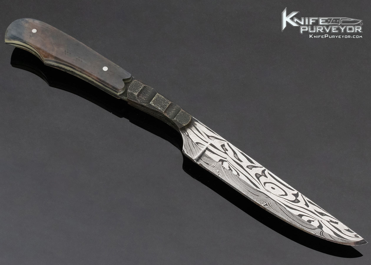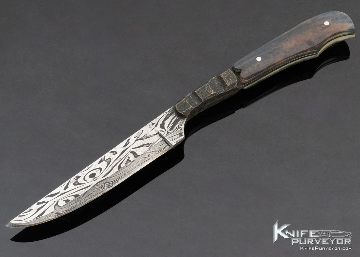 Larry Harley Custom Knife Fossil Walrus and Multibar Damascus Fixed Blade