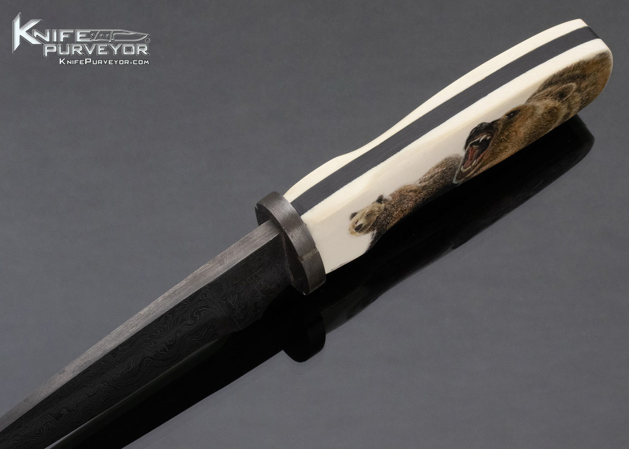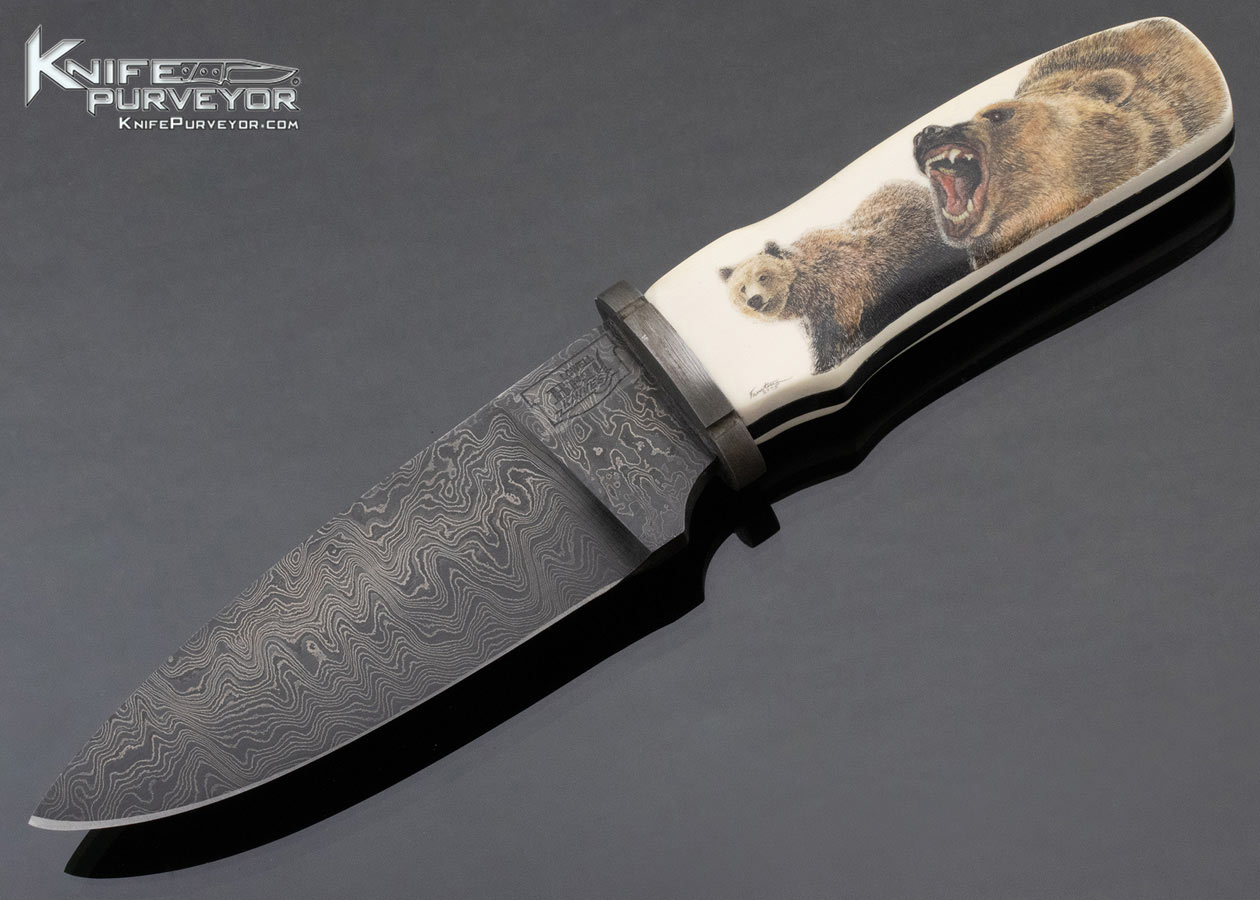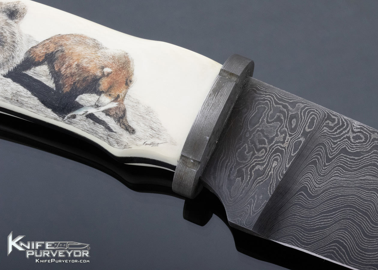 Lowell Bray Custom Knives Faustina Mead Grizzly Bear Scrimshawed Damascus Hunter