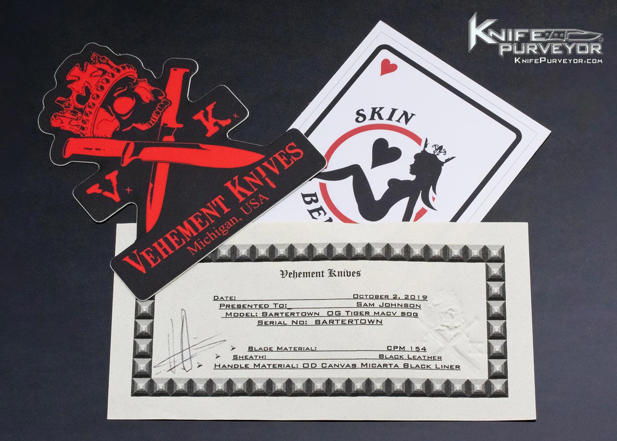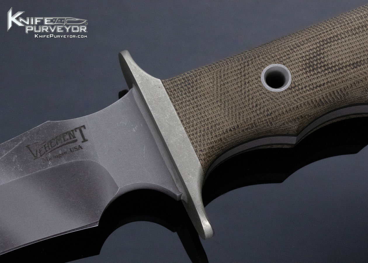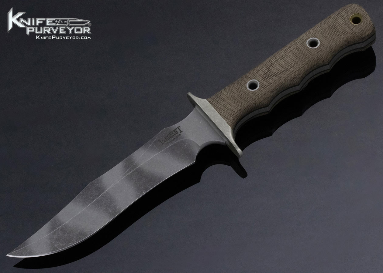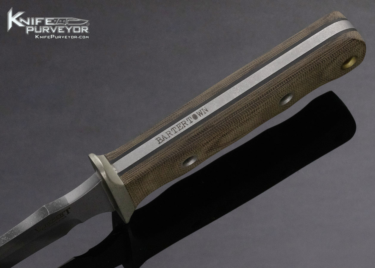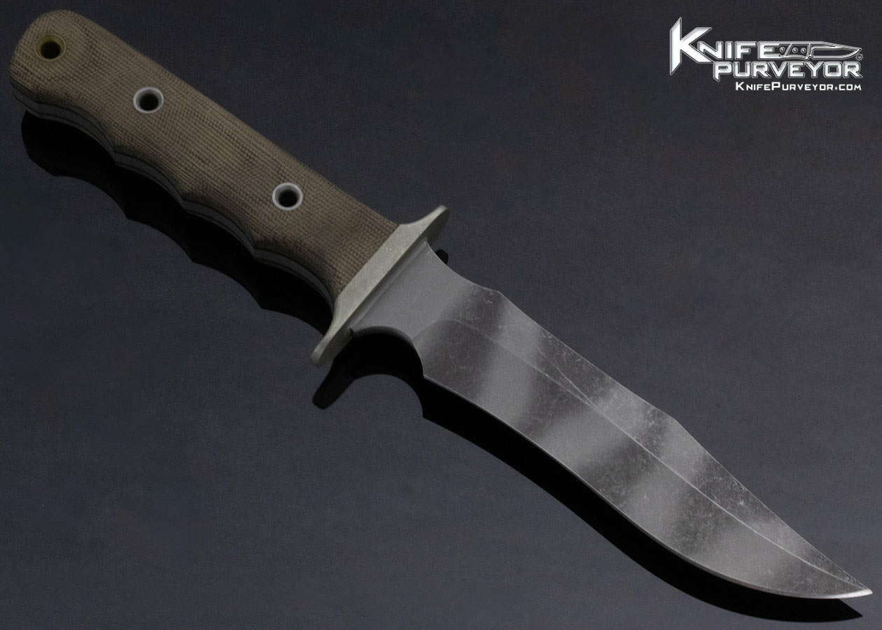 Matt Martin Custom Knife Vehement Knives “Bartertown” Stonewash Mac V SOG OD Micarta with Tiger CPM 154