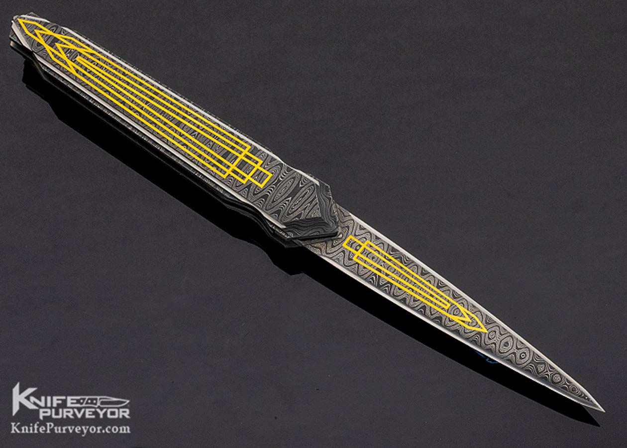 Matthew Lerch Custom Knife Double Stainless Damascus “Metropolitan Deco” Credit Card Automatic