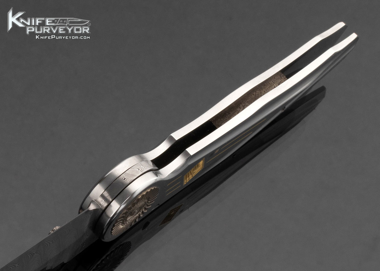 Michael Walker Custom Knife 24Kt Gold Inlaid Titanium Damasteel Blade Lock