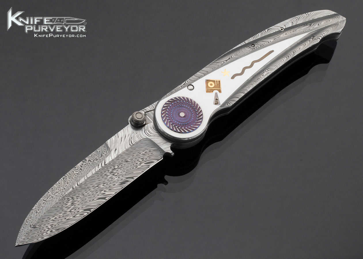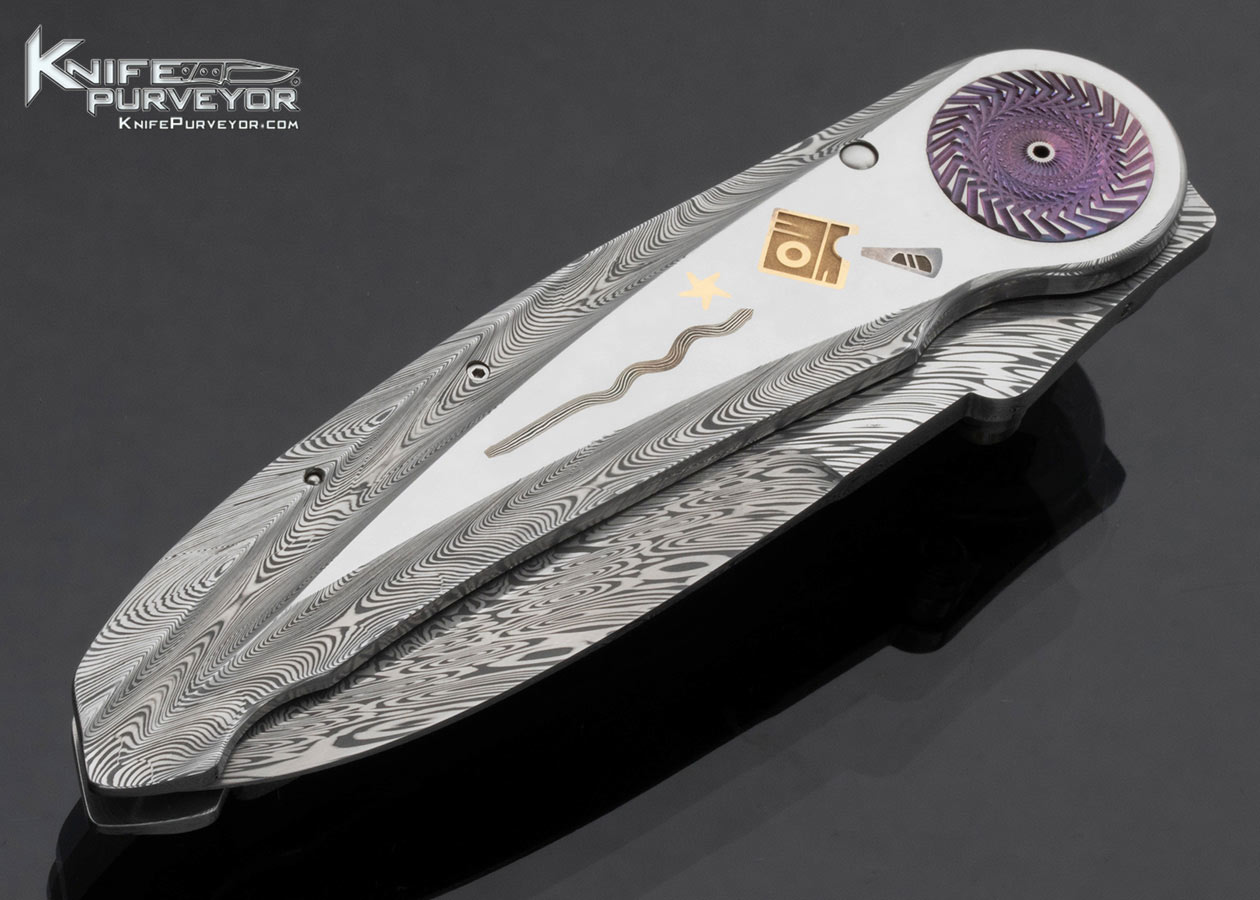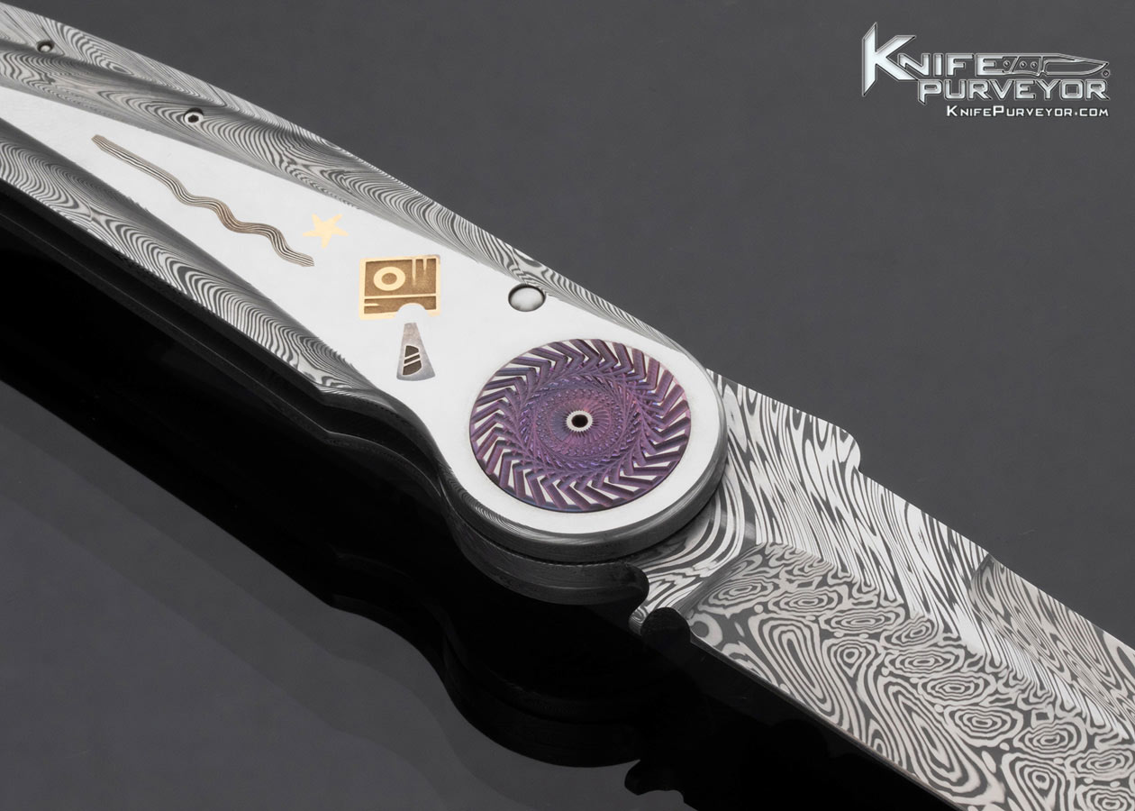 Michael Walker Custom Knife Mokume and 24Kt Gold Inlaid Damasteel Framed Damasteel Blade Lock