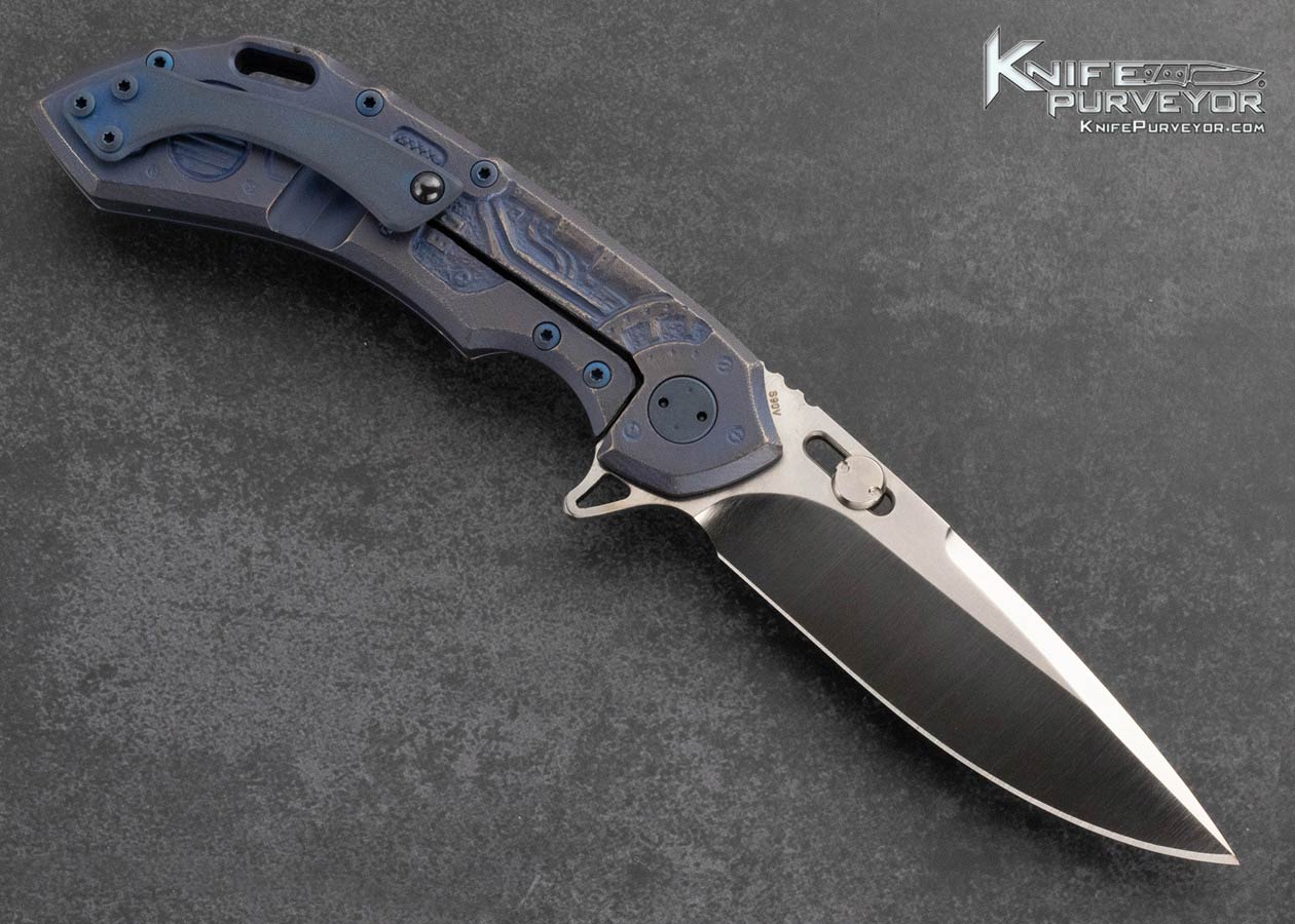 Olamic Cutlery Custom Knife Andrey Kolesnikov Handcarved Titanium “Cyborg” Wayfarer Flipper Framelock