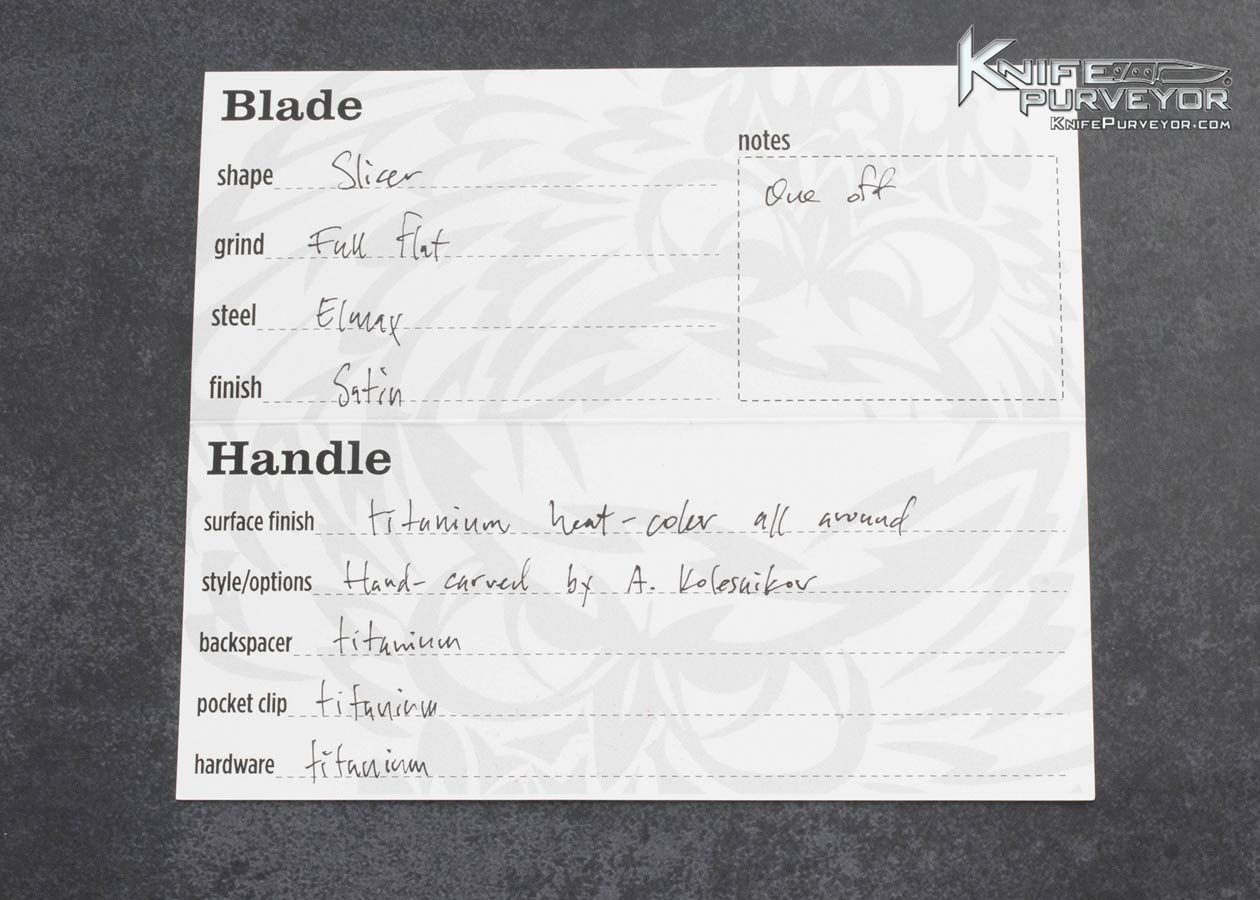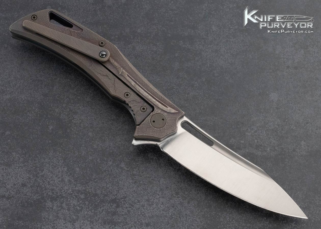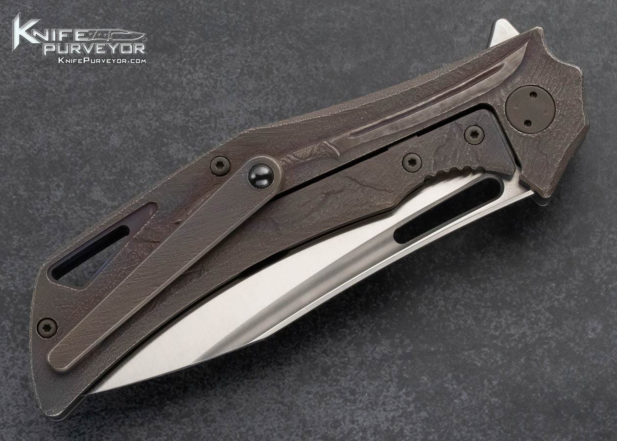 Olamic Cutlery Custom Knife Andrey Kolesnikov Handcarved Titanium “Valkyrie” Swish Framelock Flipper