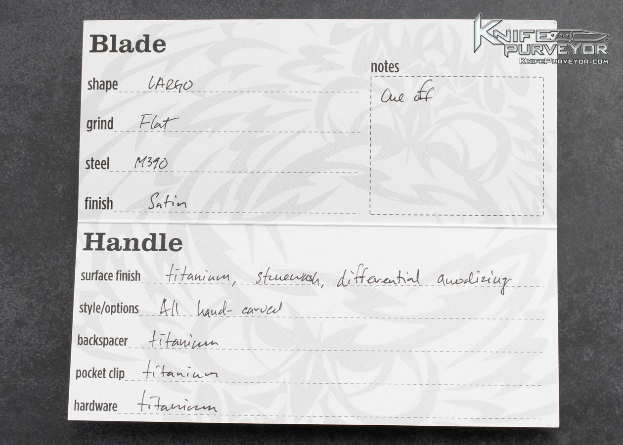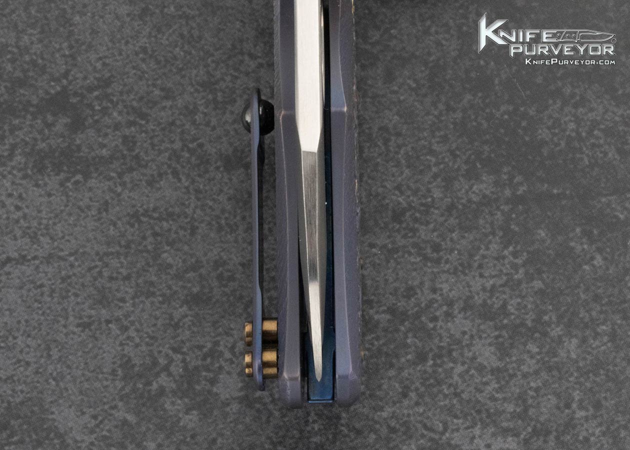 Olamic Cutlery Custom Knife Handcarved Anodized Titanium Framelock Busker