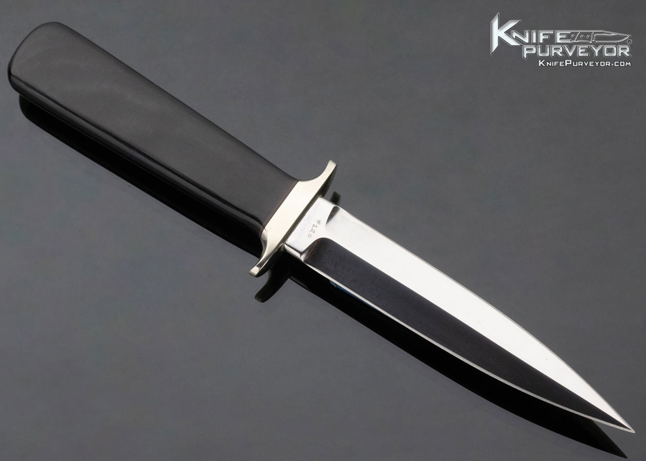 Pat Crawford Custom Knife Black Micarta with Aloma Crawford Scrimshawed Black Widow Spider Boot Dagger