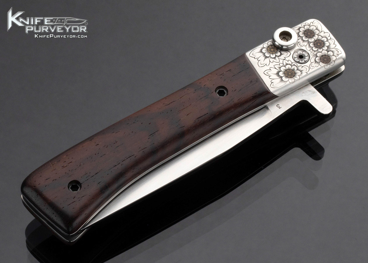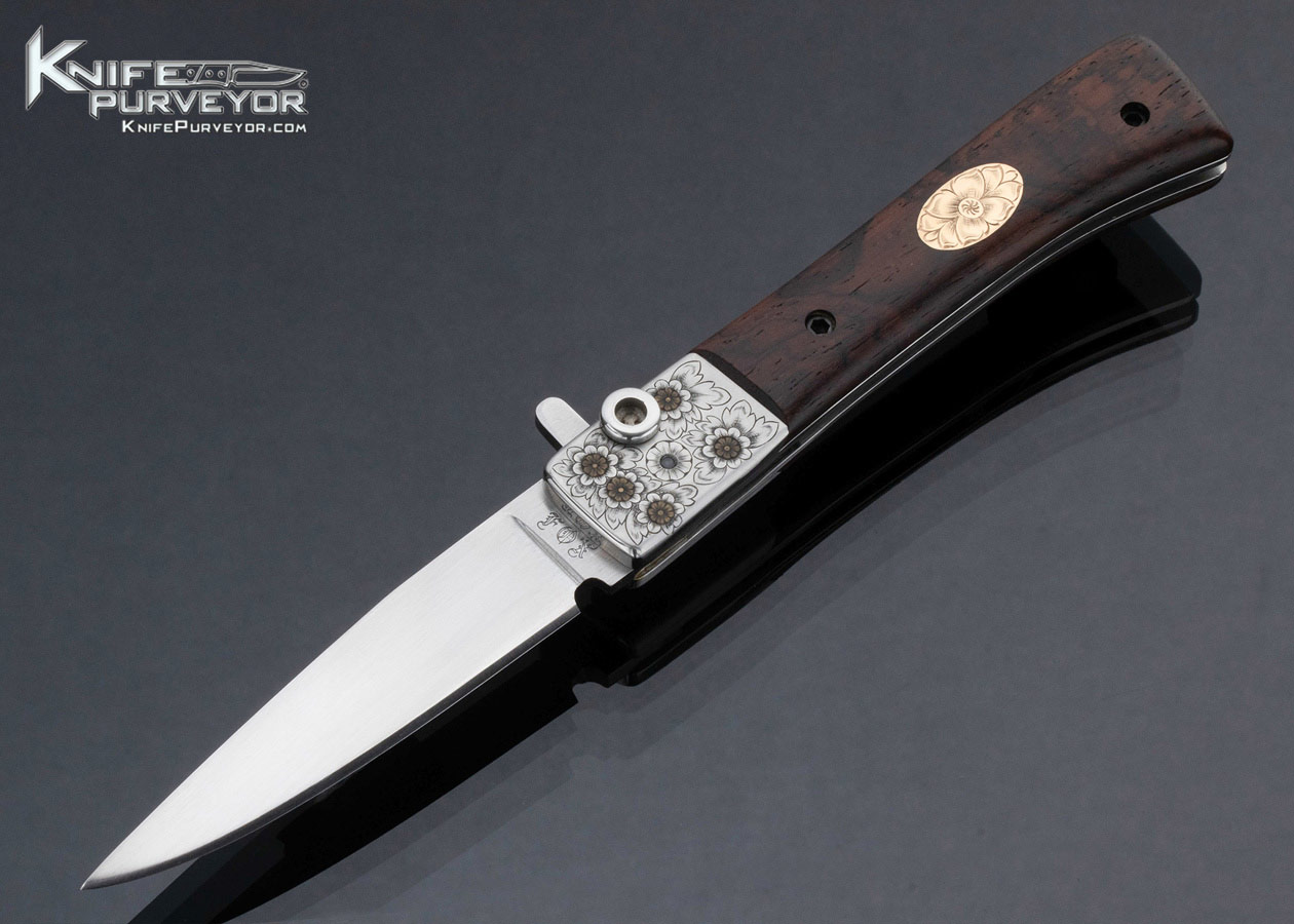 Paul Fox Custom Knife George Sherwood Engraved Desert Ironwood Toggle Lock Folder