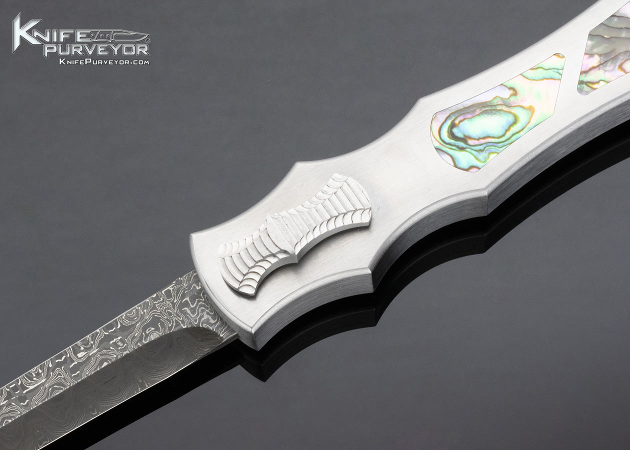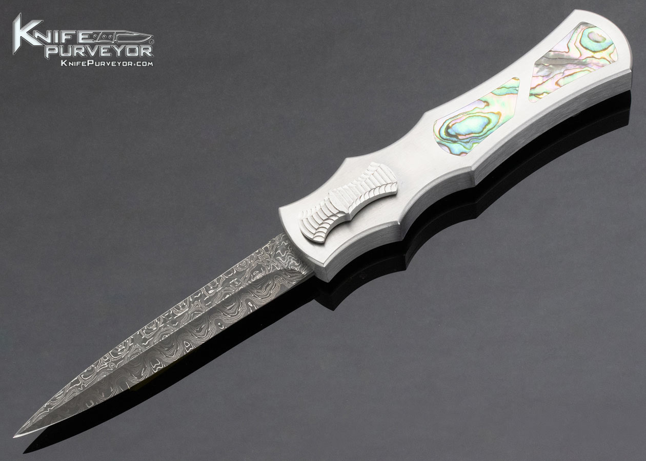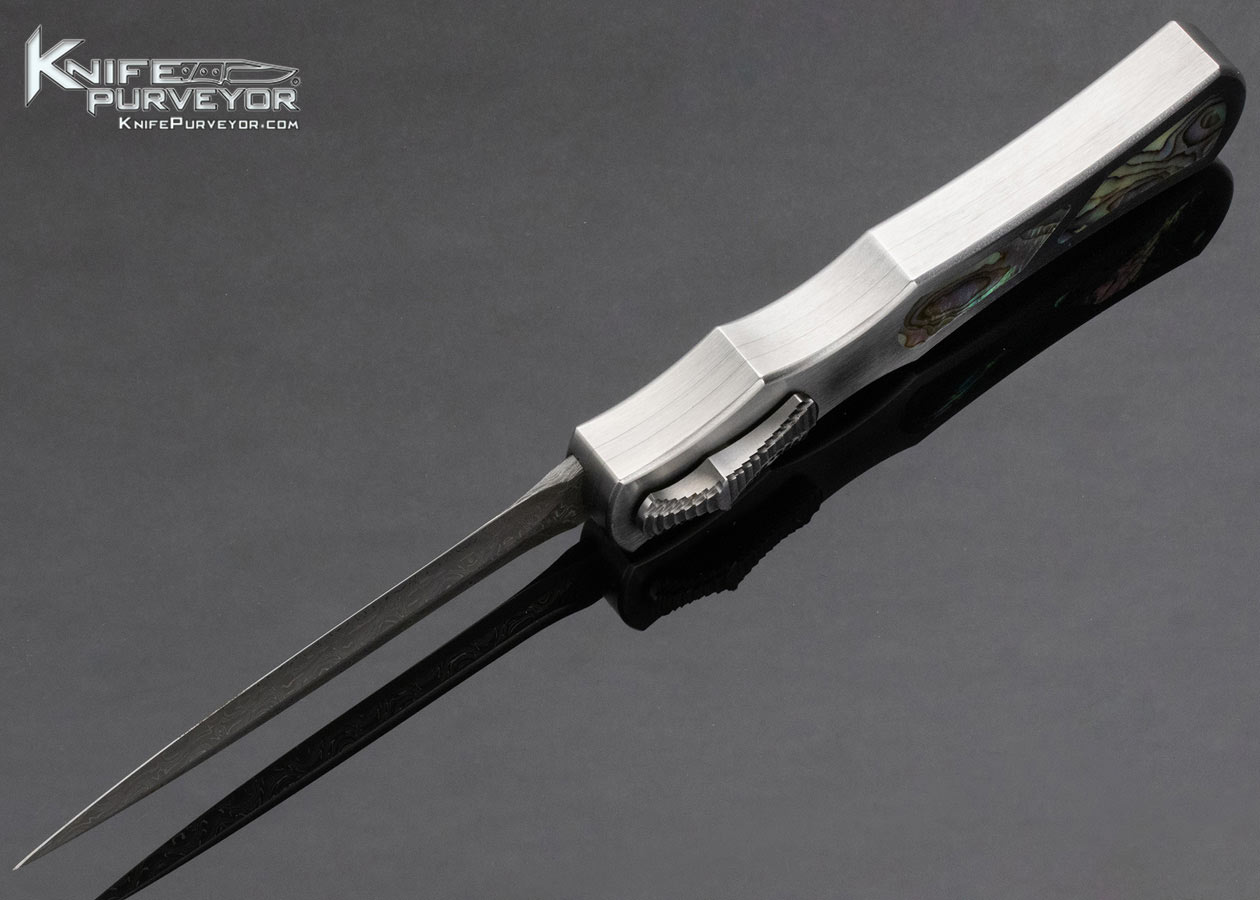 Paul Panak Custom Knife Burn Knives Double Action Out the Front Automatic Abalone Inlaid Razor with Damascus Blade