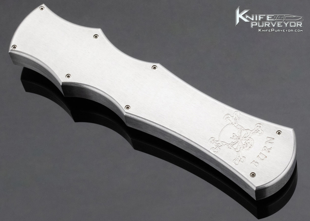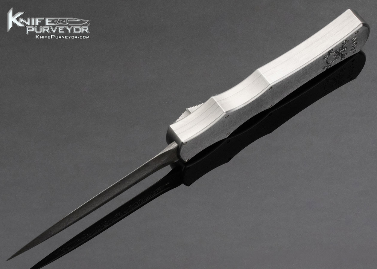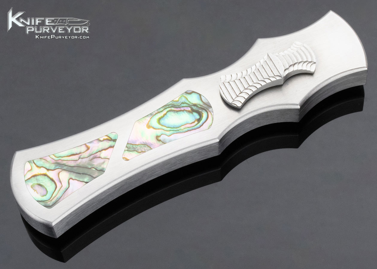 Paul Panak Custom Knife Burn Knives Double Action Out the Front Automatic Abalone Inlaid Razor with Damascus Blade