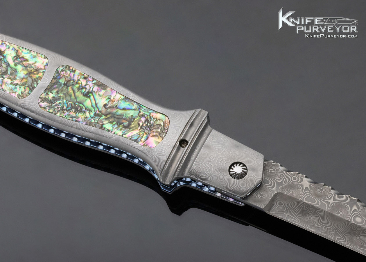 Phil Boguszewski Custom Knife Damascus and Abalone Linerlock Flipper
