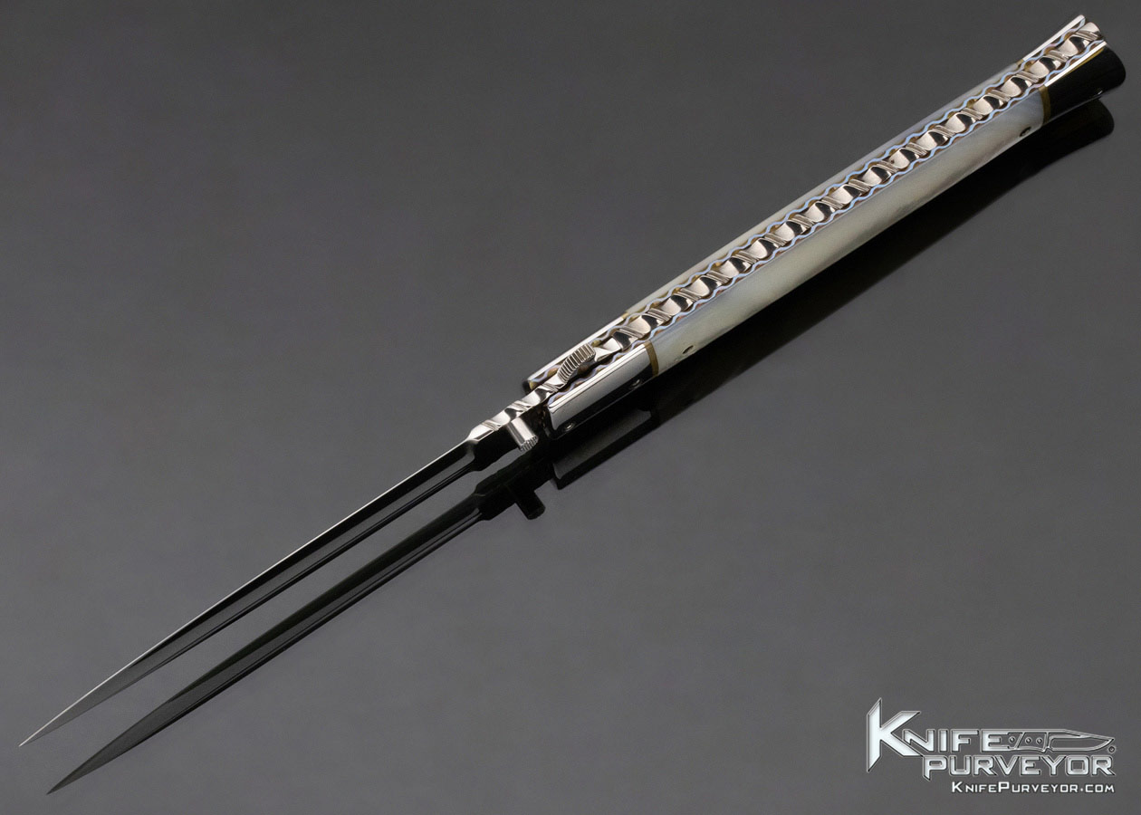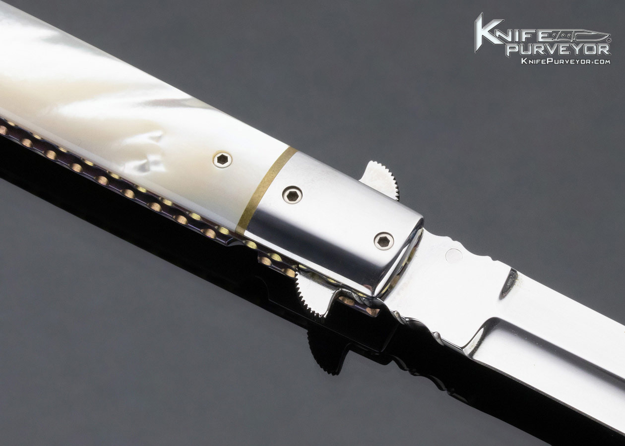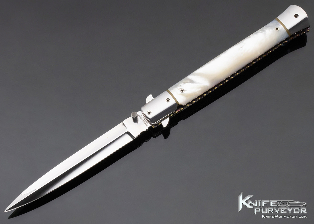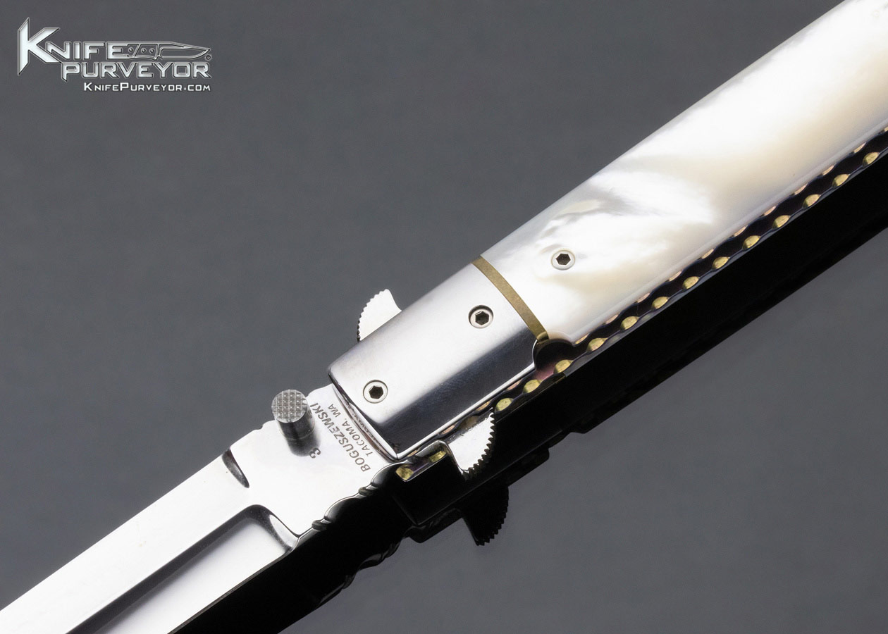 Phil Boguszewski Custom Knife Mother of Pearl Stiletto Flipper Linerlock