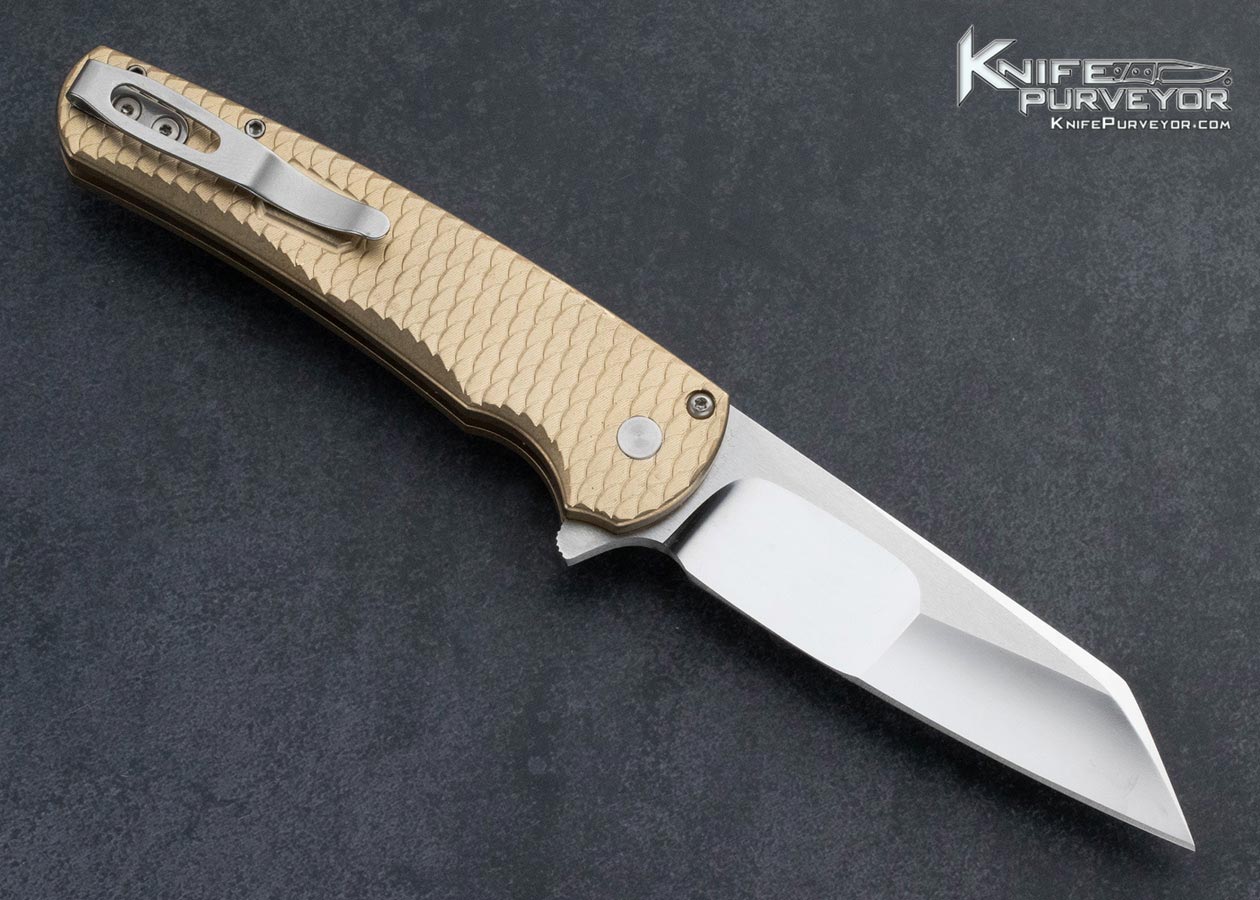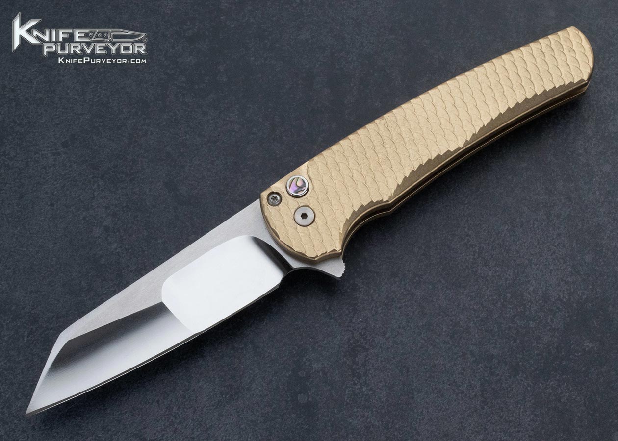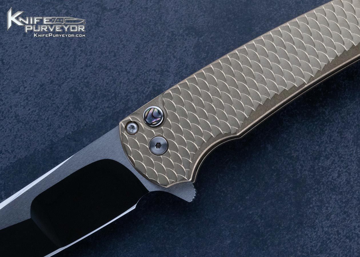 Protech Custom Knife Dragon Scaled Flipper with Abalone Inlaid Button