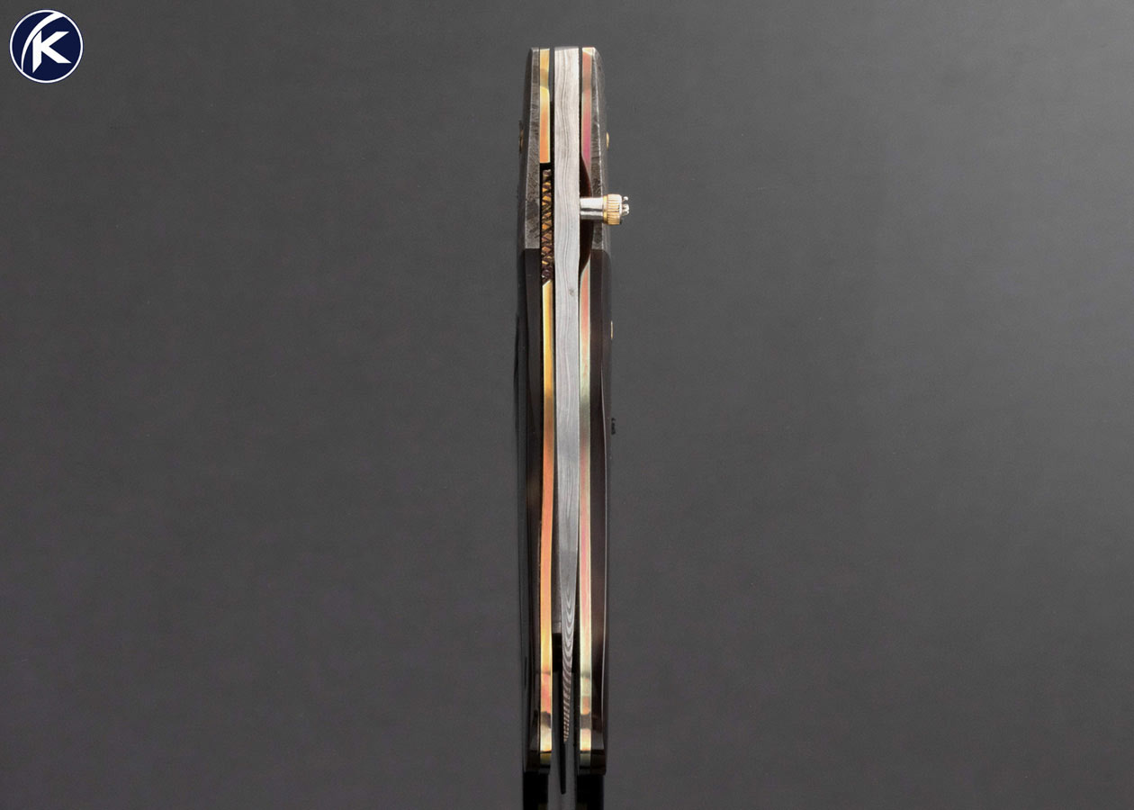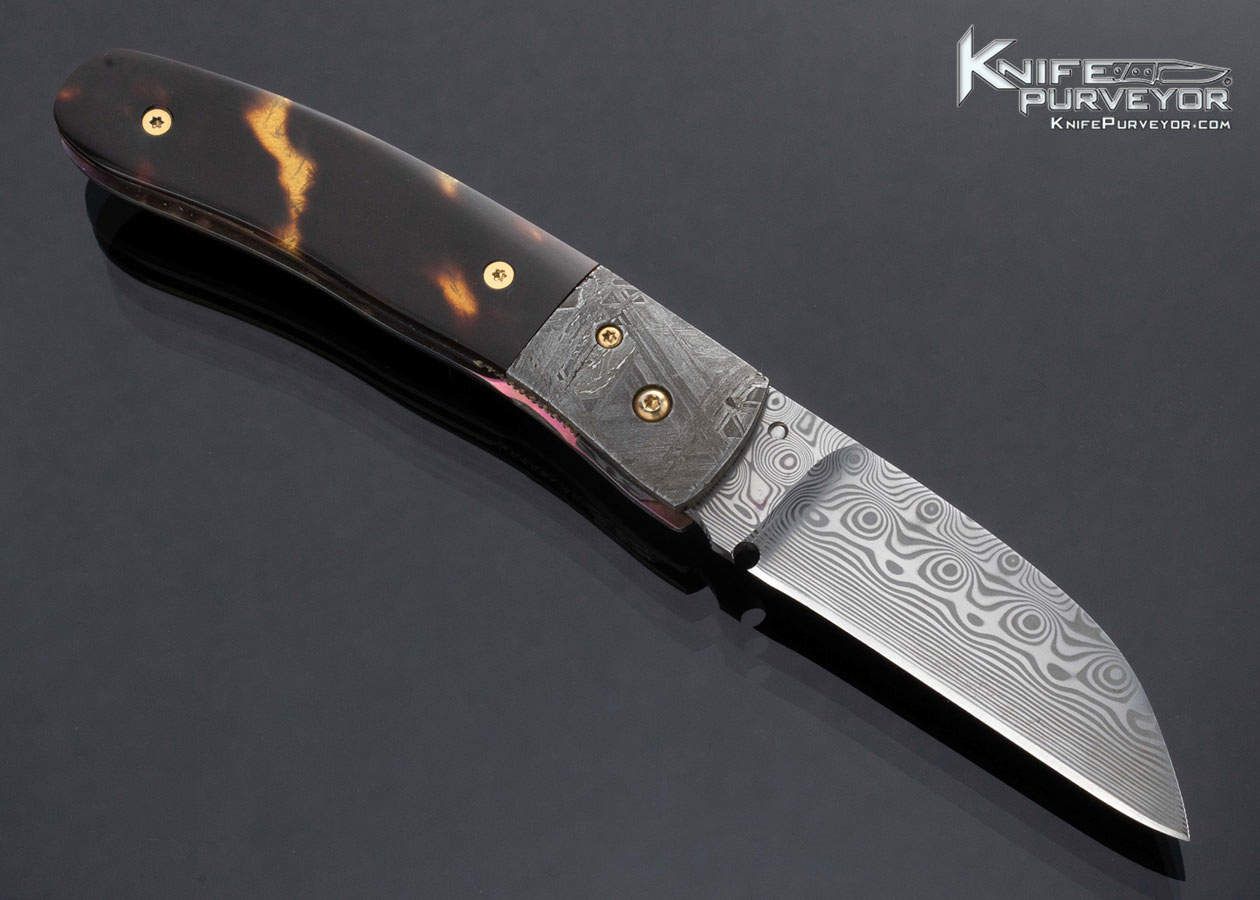 R.B. Johnson Custom Knife Damasteel Gibeon Meteorite and Amber Over 24kt Gold Leaf Linerlock