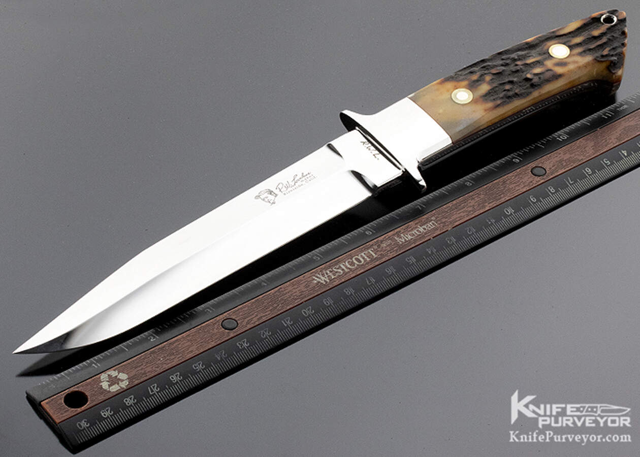 R.W. Loveless Custom Knife Portrait Logo Amber Stag Integral Fighter w/ Signed Sheath