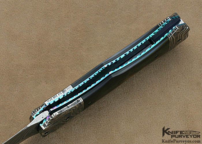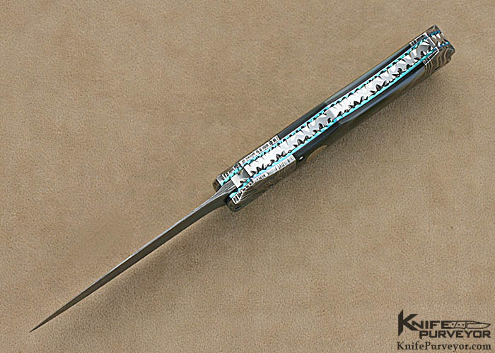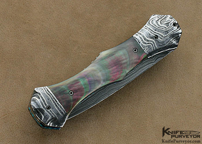 Rainy Vallotton Custom Knives Black Lip Tahitian Pearl Shell & Damascus Double Action Automatic Linerlock