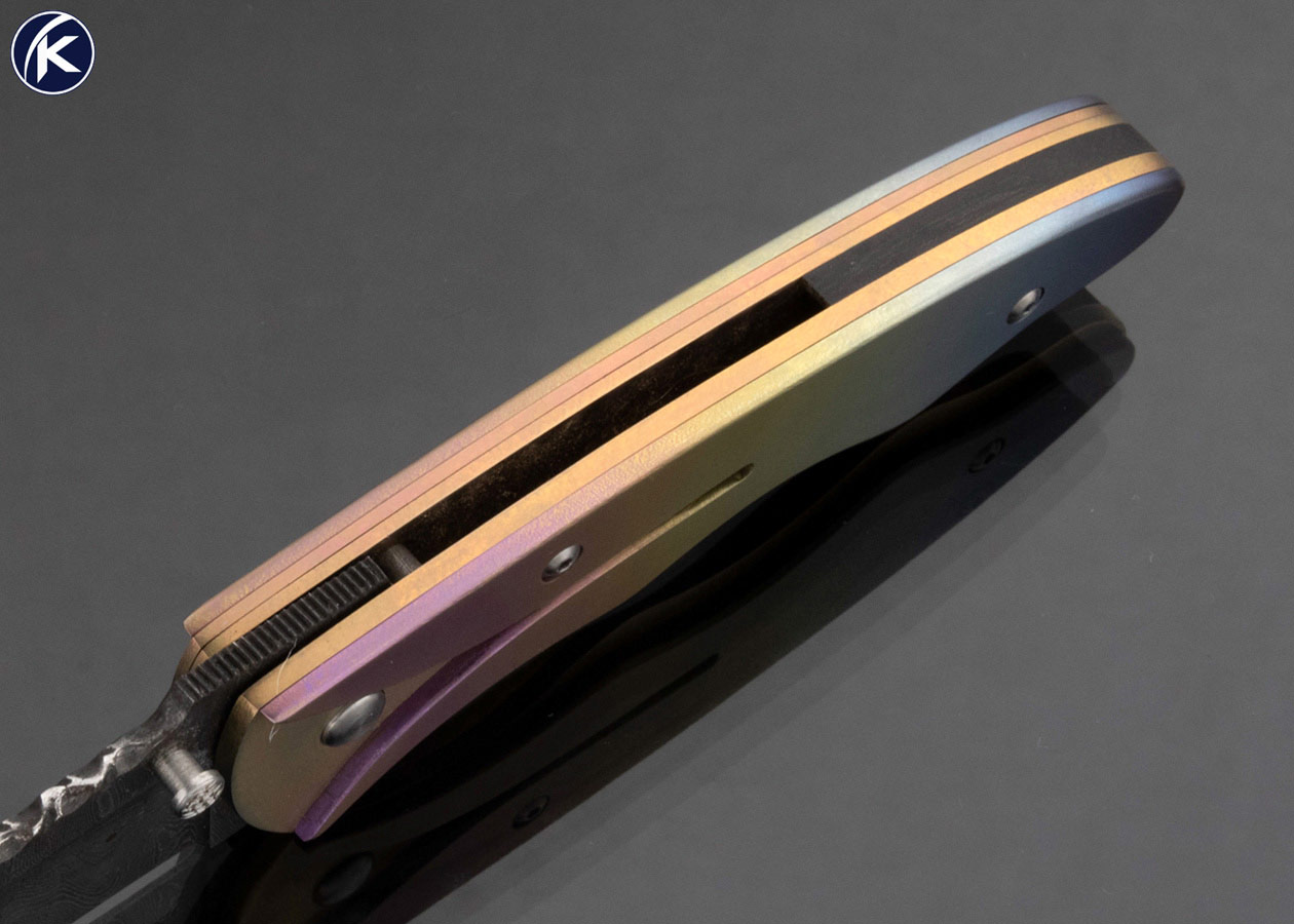 Randall Gilbreath Custom Knife Damascus and Anodized Titanium Linerlock