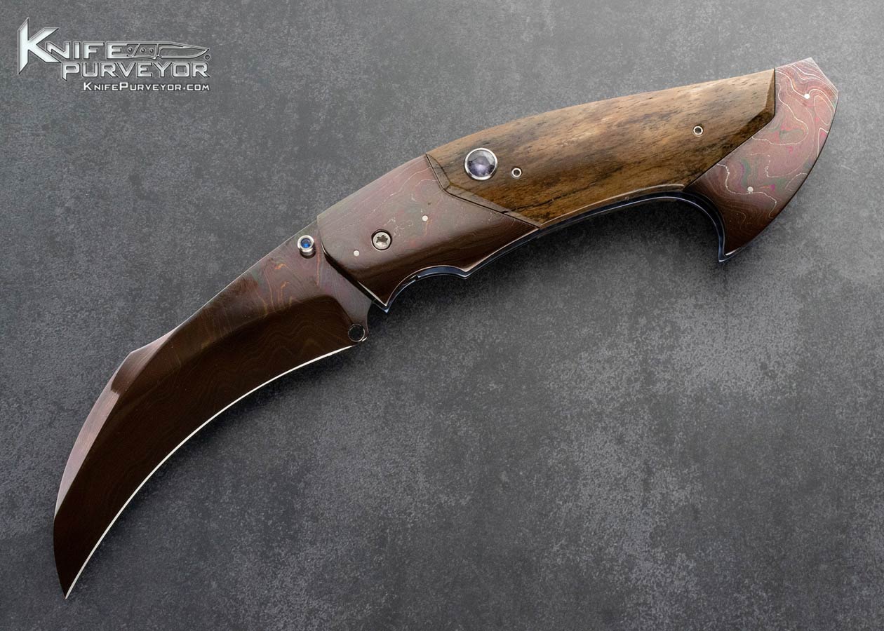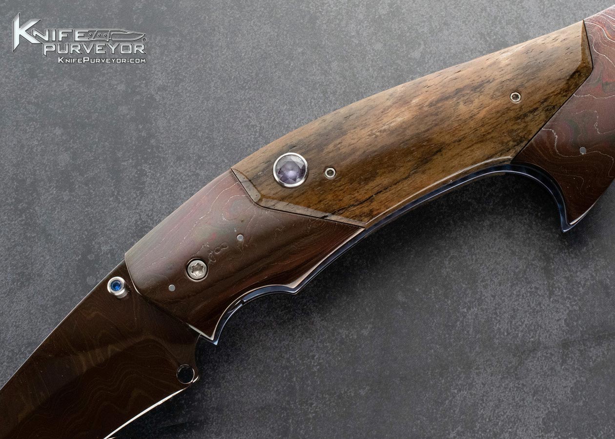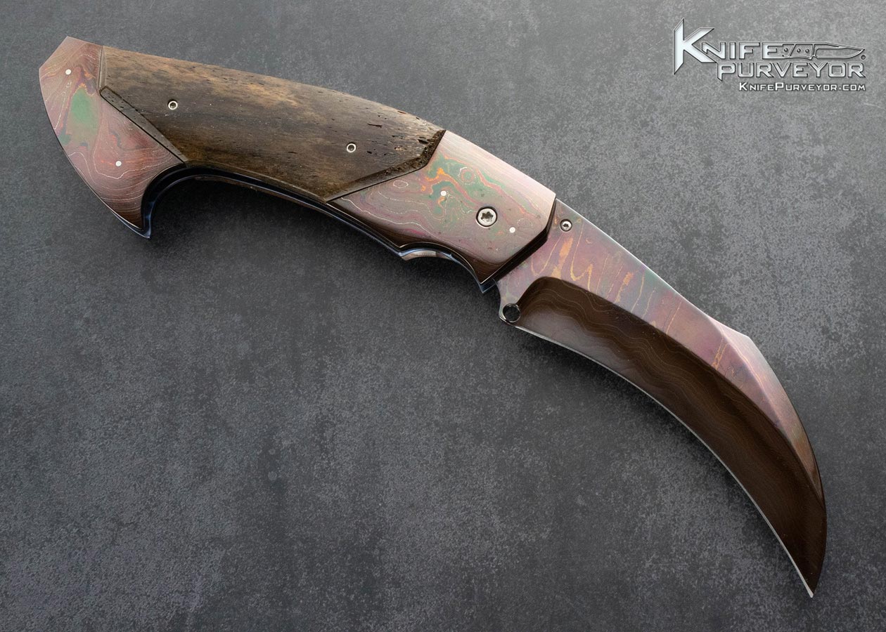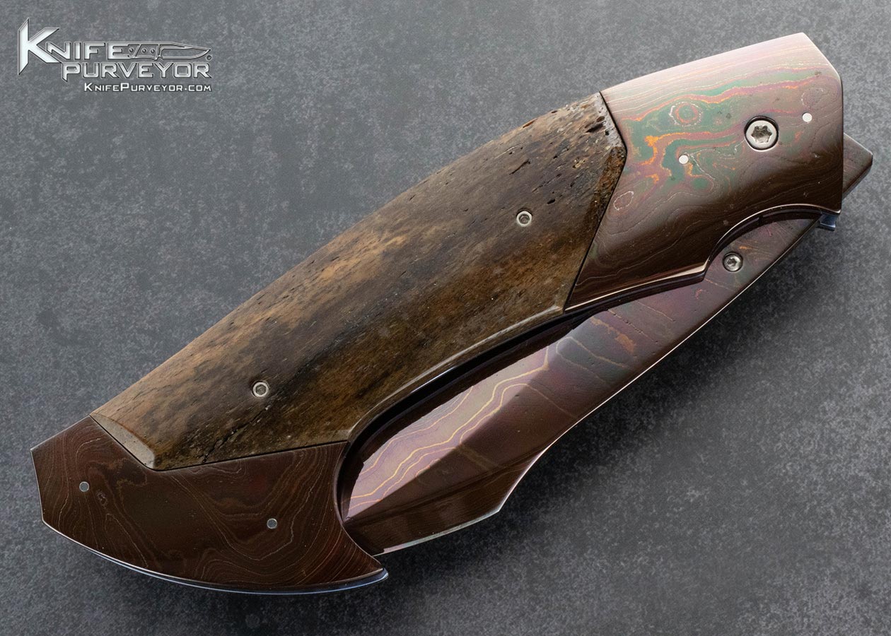 Reese Weiland Custom Knife Blued Damascus and Mammoth Double Action Automatic Rastor Linerlock
