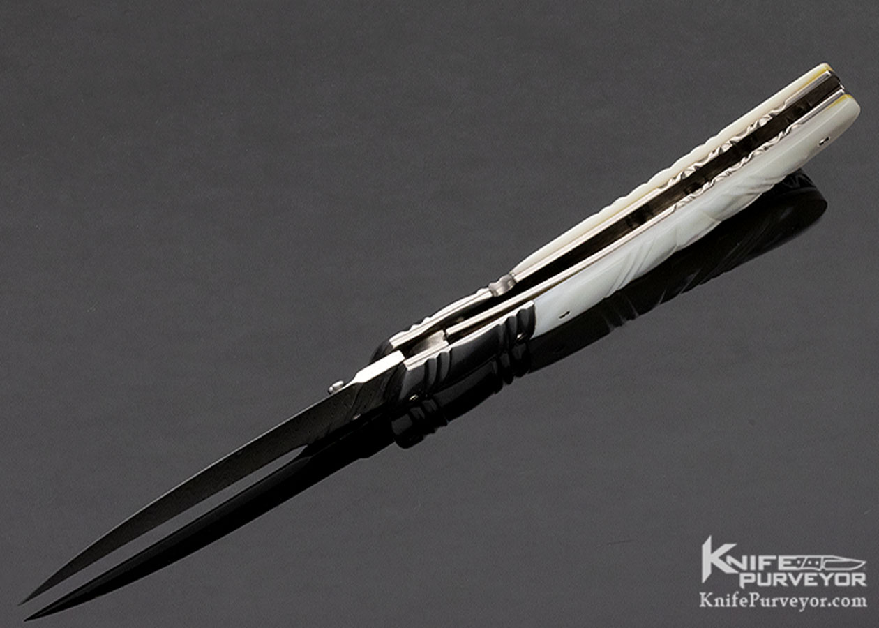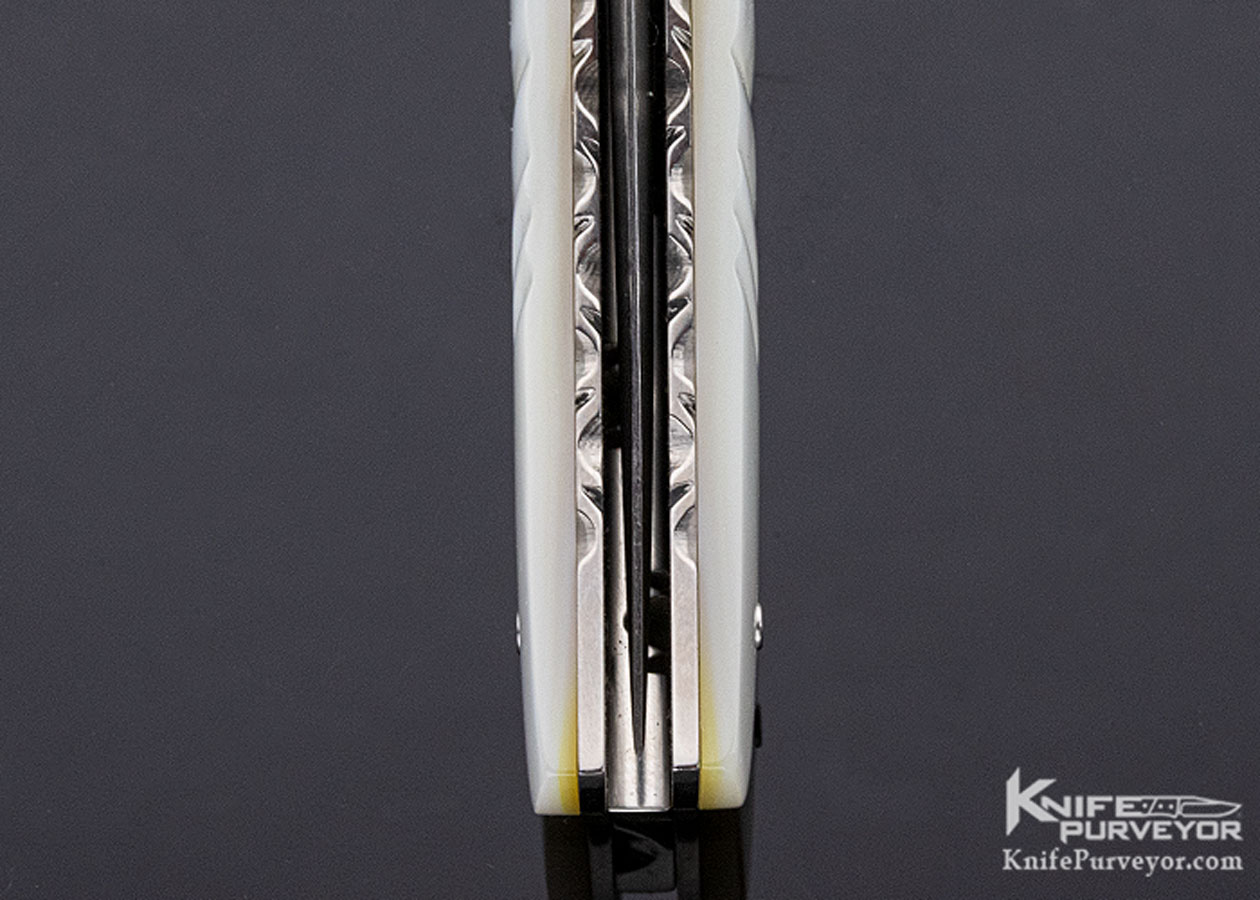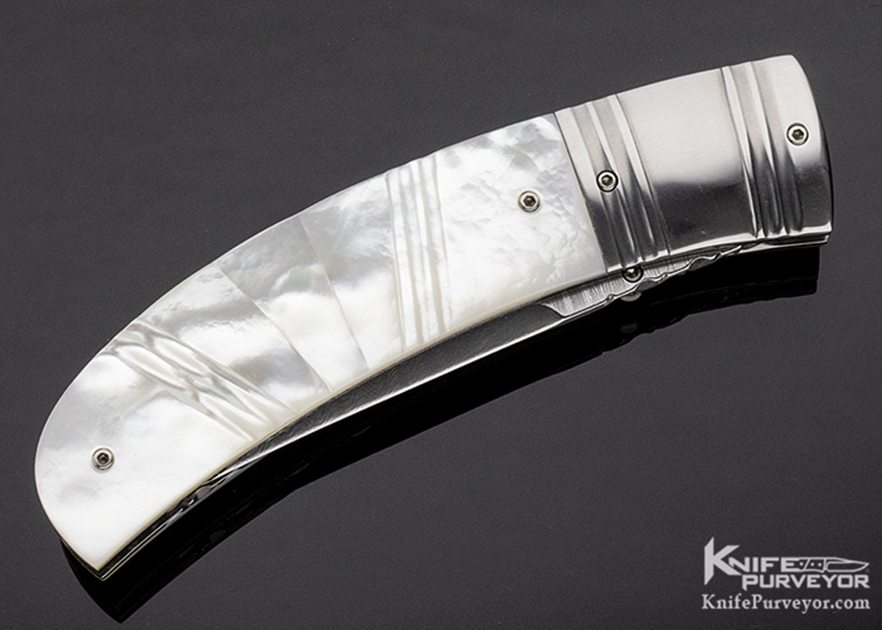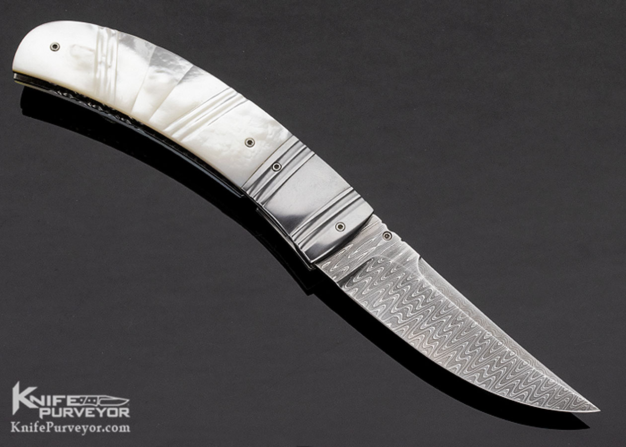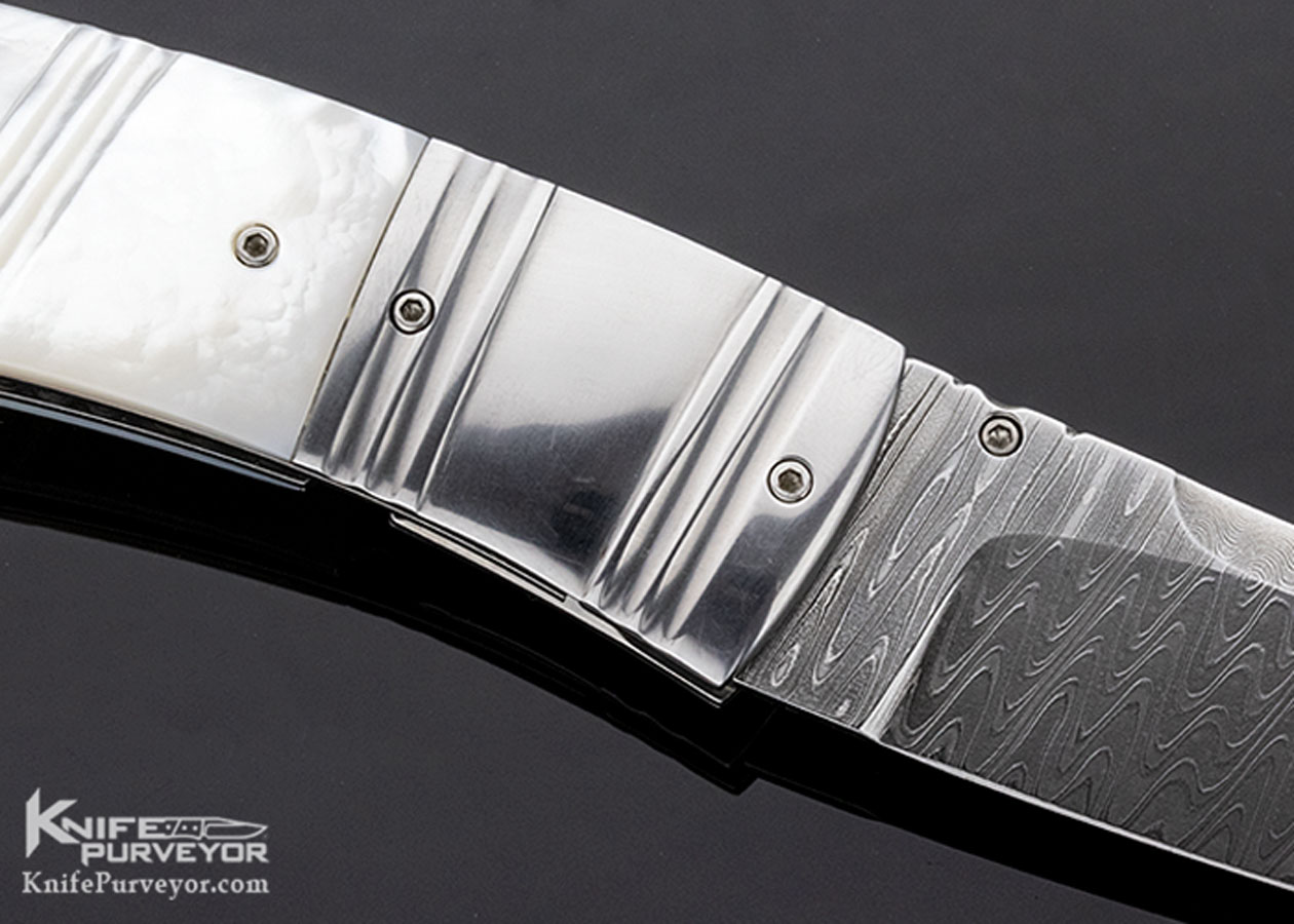 Rex Robinson Custom Knife Damascus, Fluted Steel & Fluted Mother of Pearl Shell Linerlock