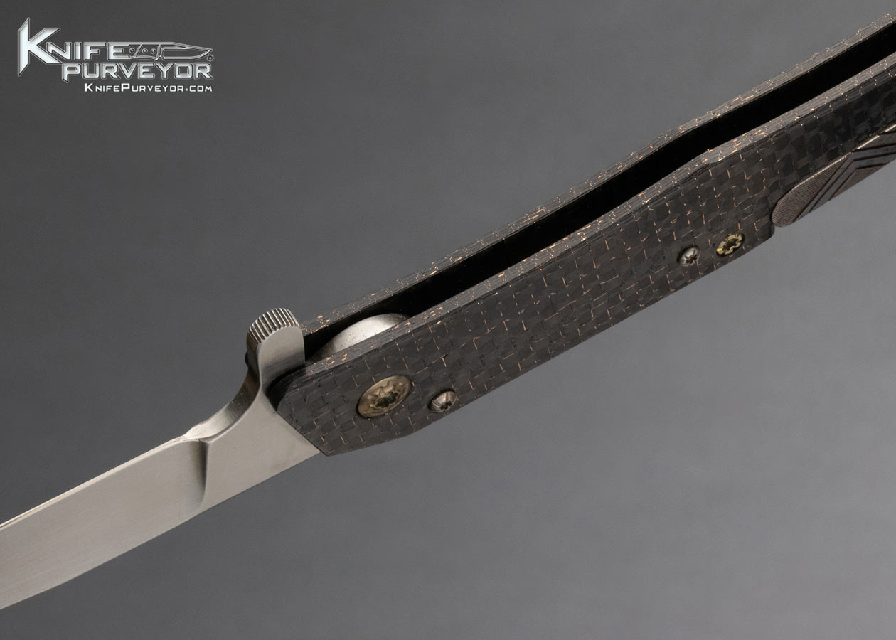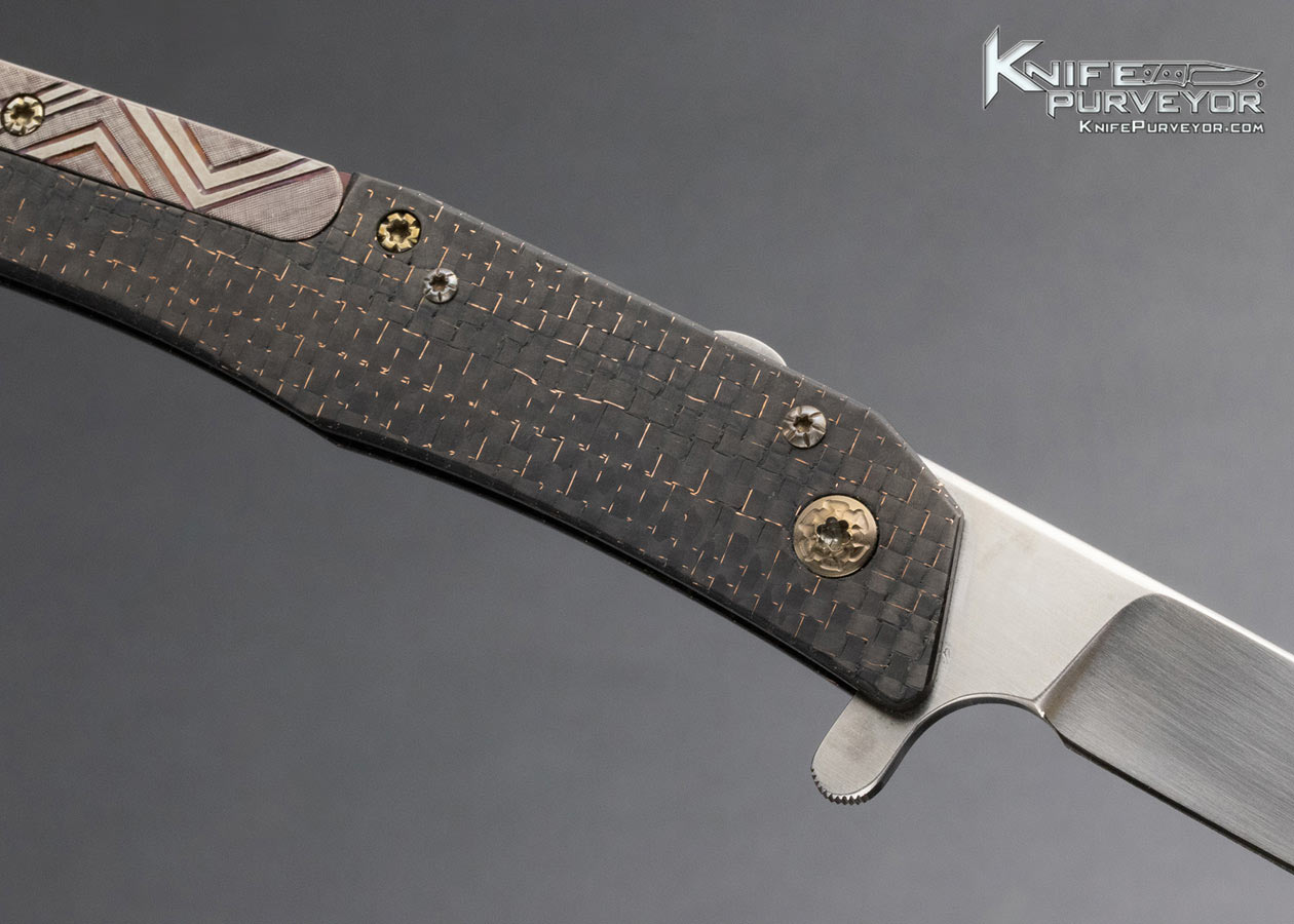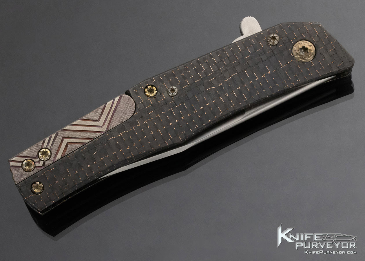 Richard S. Wright Custom Knife Lightning Strike Carbon Fiber Flipper with Gemstones and Articulating Pocket Clip