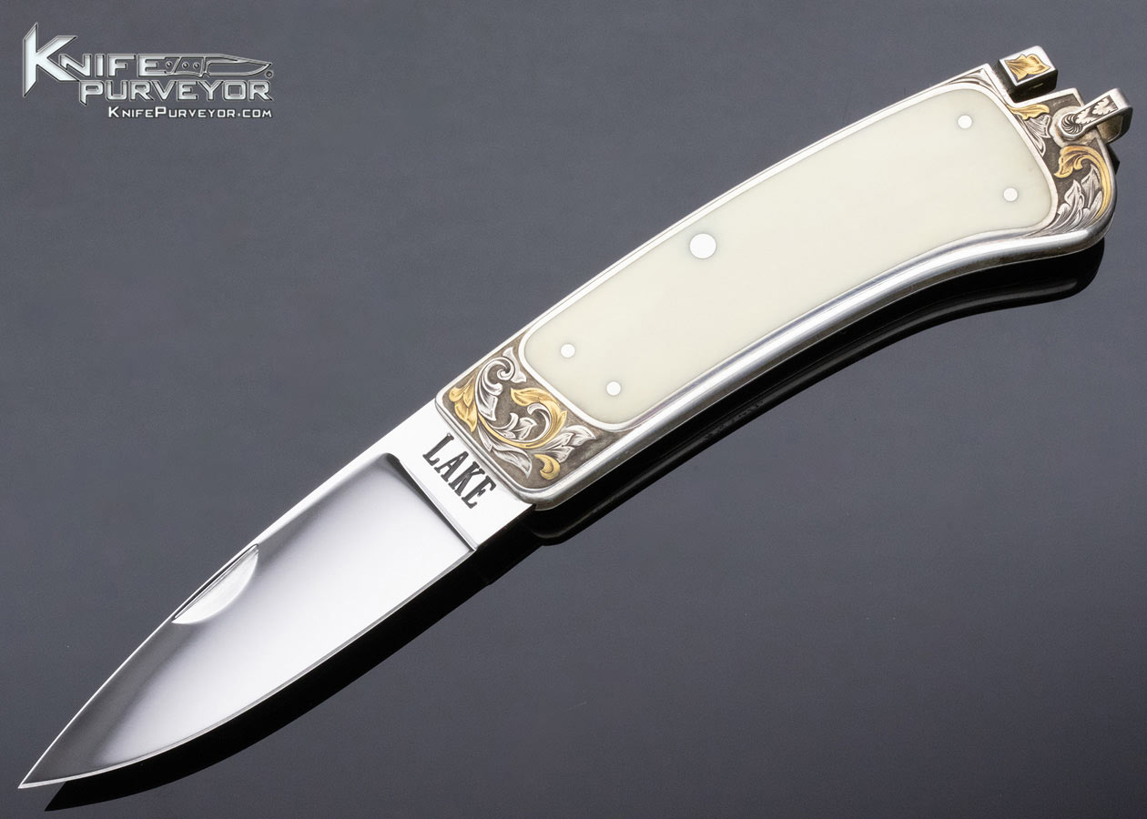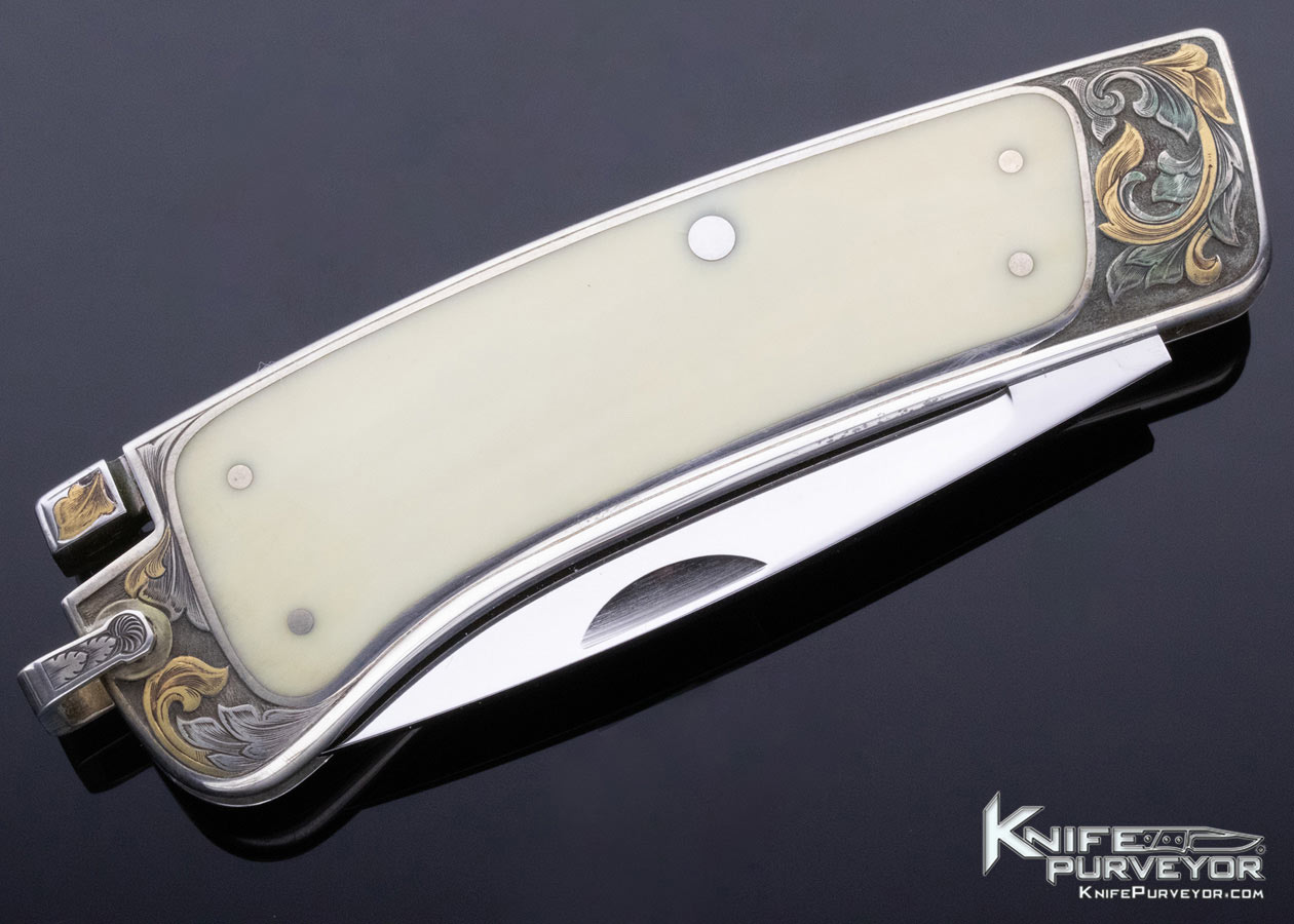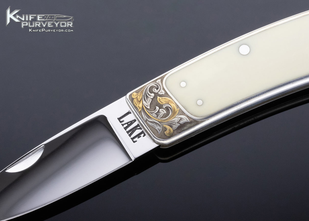 Ron Lake Custom Knife Hippo Tooth Interframe Tail Lock Engraved by Jim Small