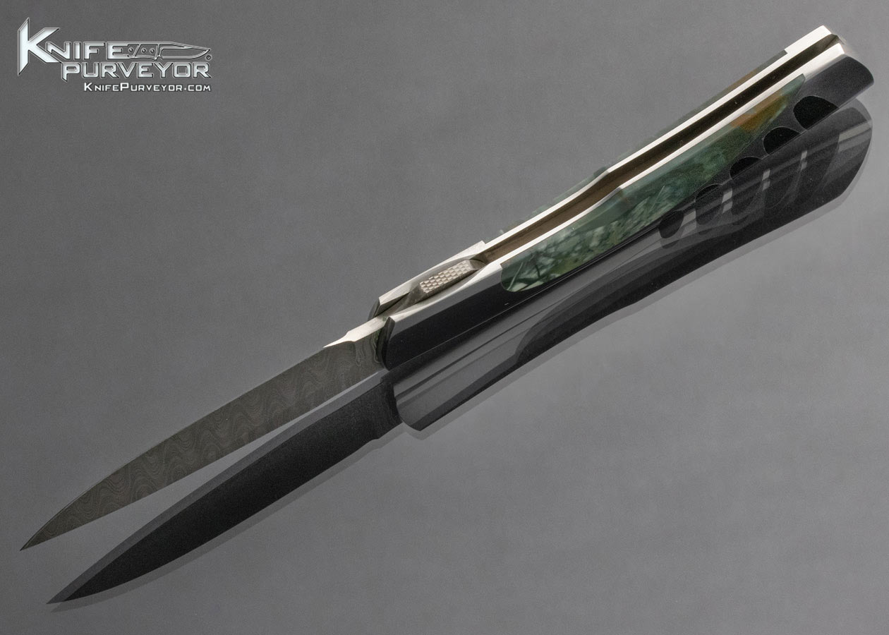 Scott Sawby Custom Knife Damascus and Morrisonite Jasper and Black Jade “Killdeer” Self Lock