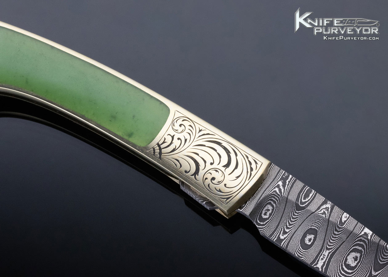 Scott Sawby Custom Knife Damascus, Jade and Christy George Engraved Mokume Interframe Self Lock