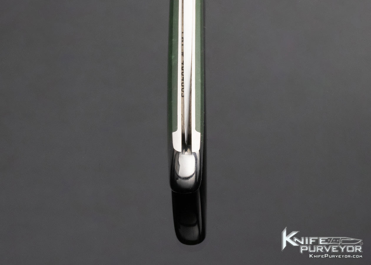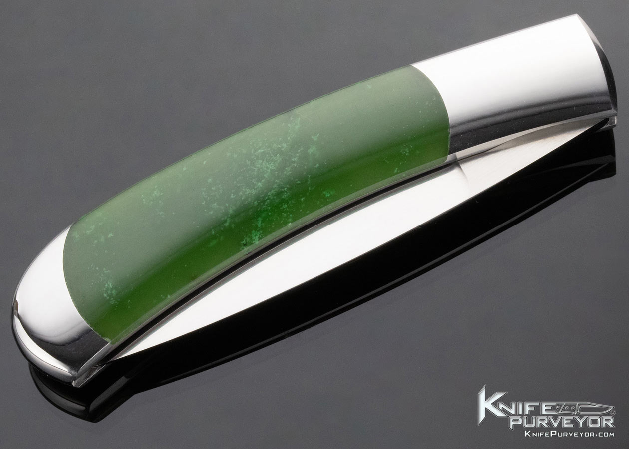 Scott Sawby Custom Knife Self Lock with Stainless Bolsters and Green Jade Scales