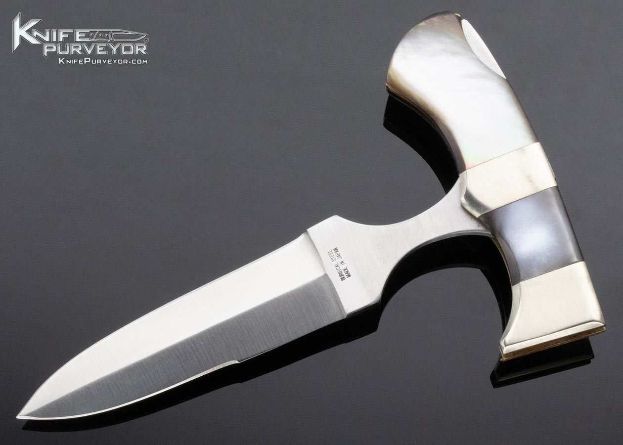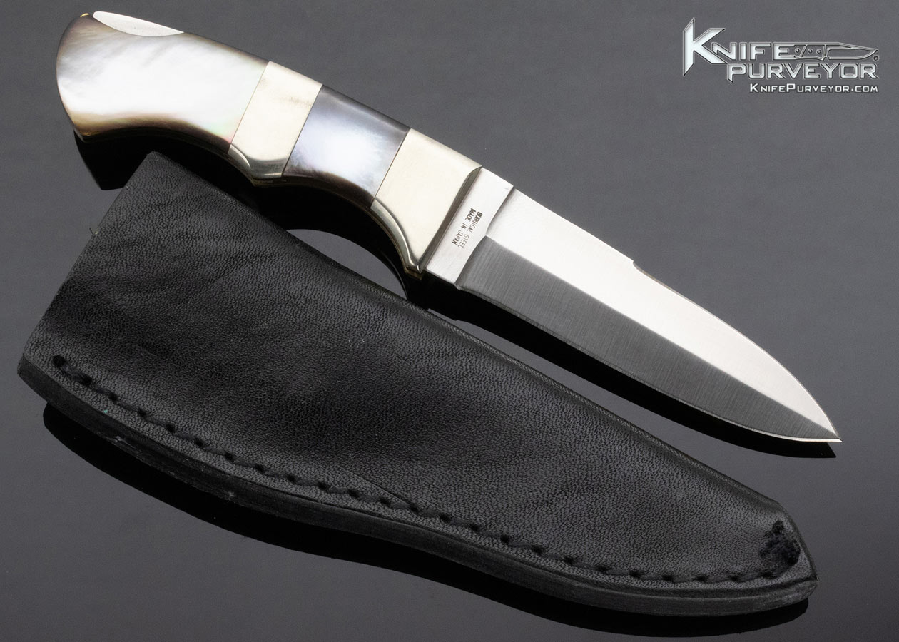 Seki City Japan Vintage Parker Cutlery Company Blacklip Pearl Folding Push Dagger Lockback with Leather Sheath