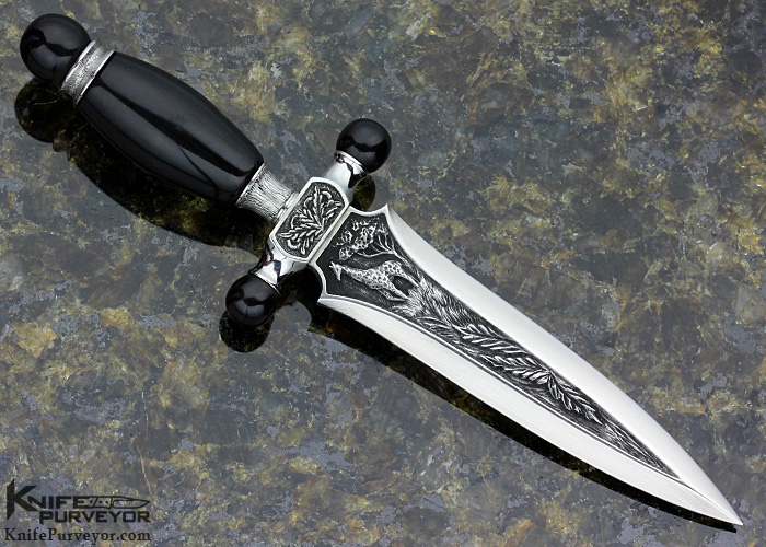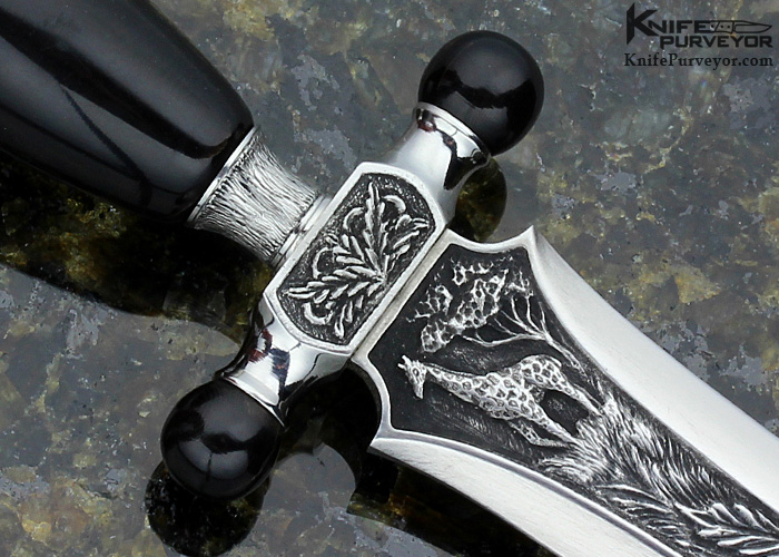Gary Blanchard Custom Knife Sole Authorship Engraved Mini Dagger “Elephant and Giraffe”