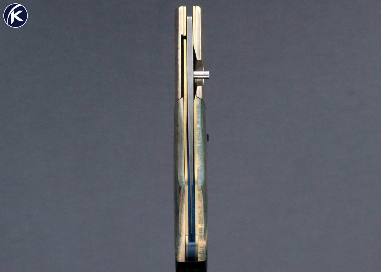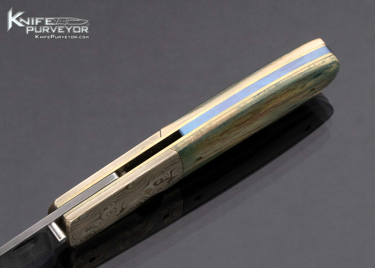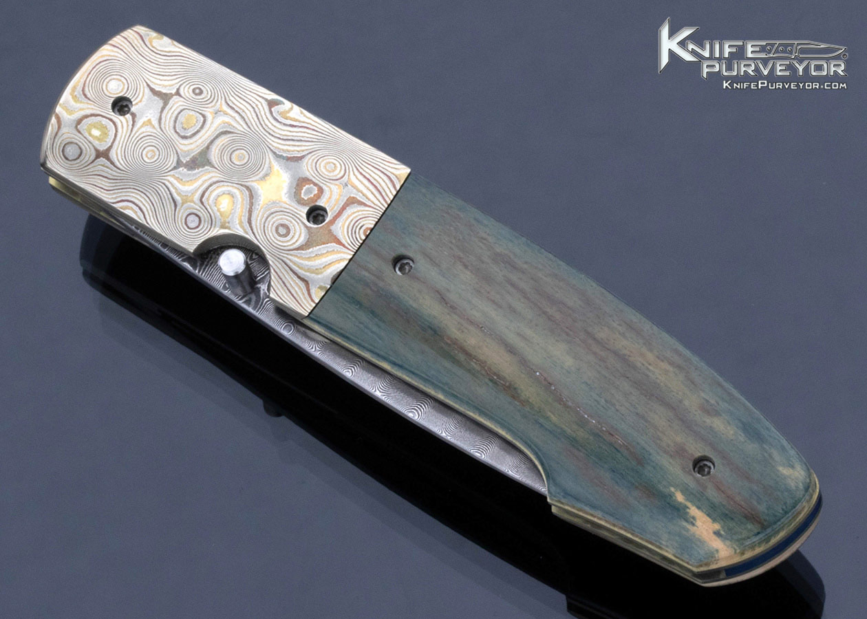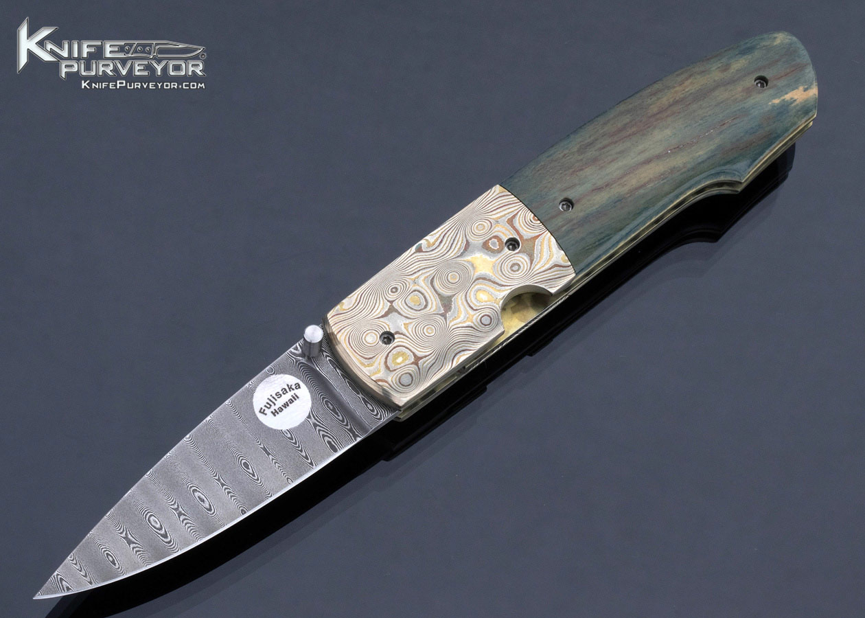 Stan Fujisaka Custom Knife Damascus and Green Mammoth with Mokume Linerlock