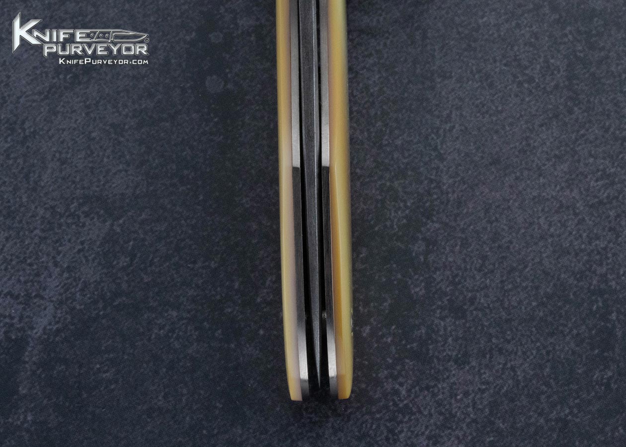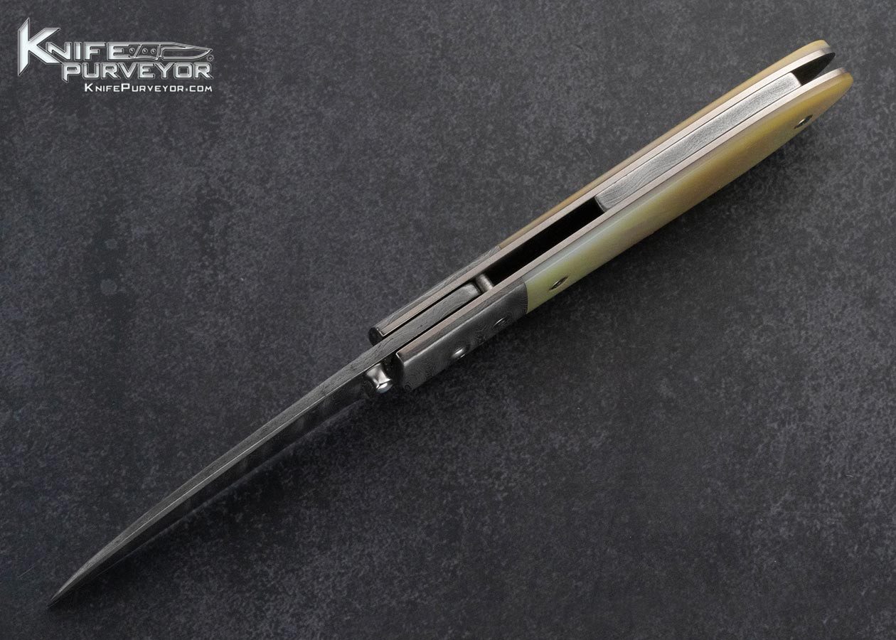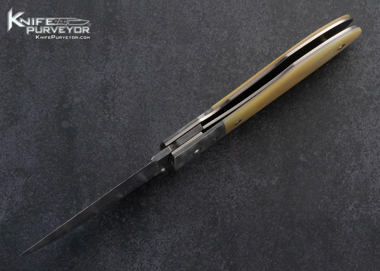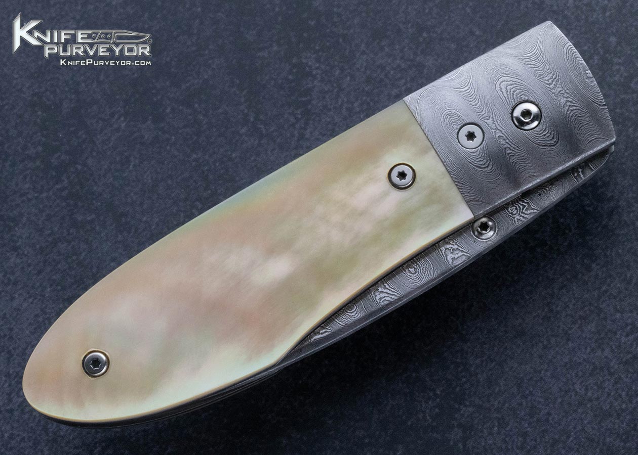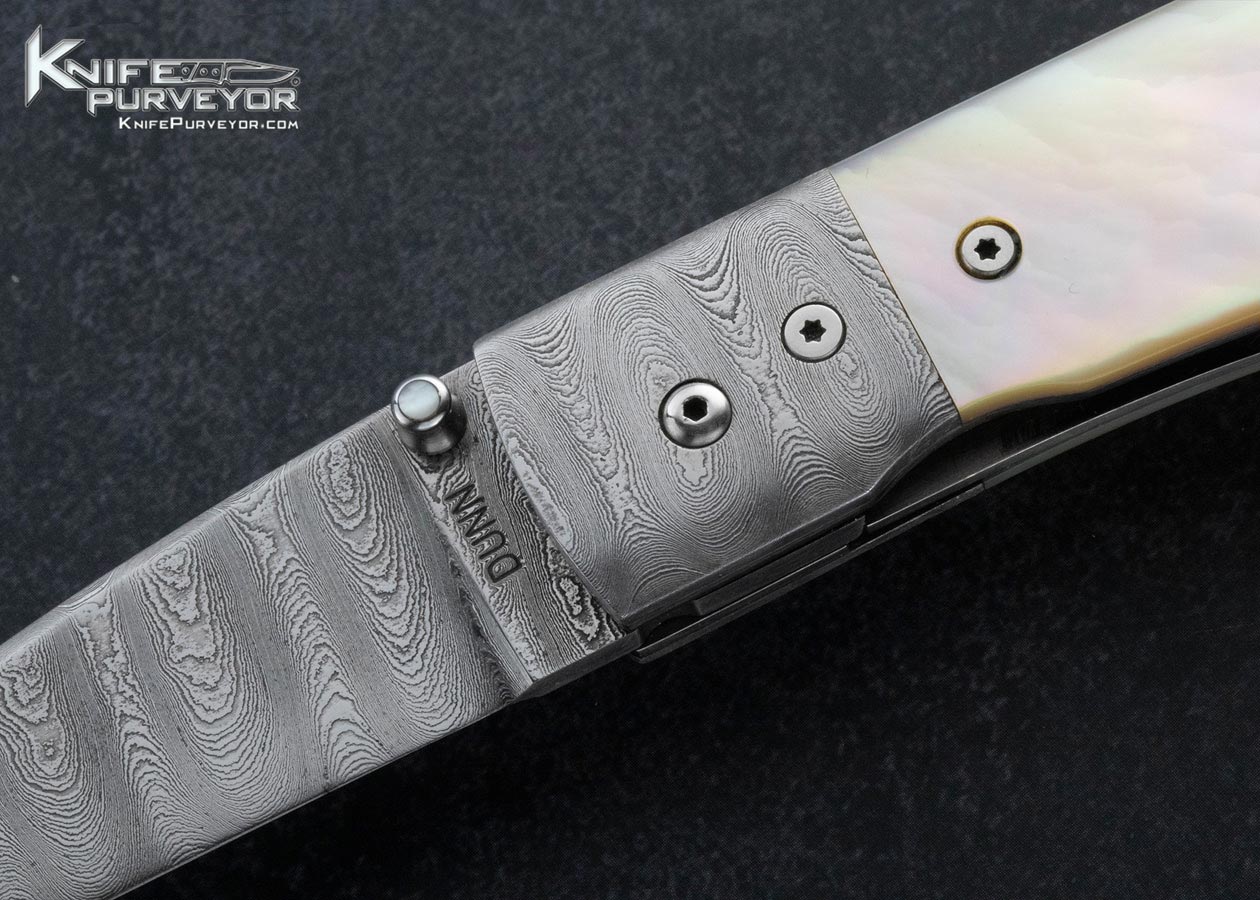 Steve Dunn Custom Knife Sole Authorship Damascus and Goldlip Peal Linerlock