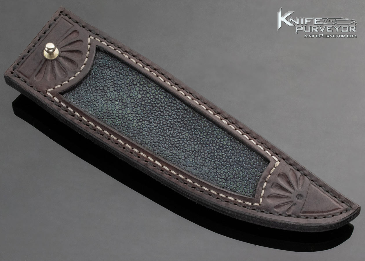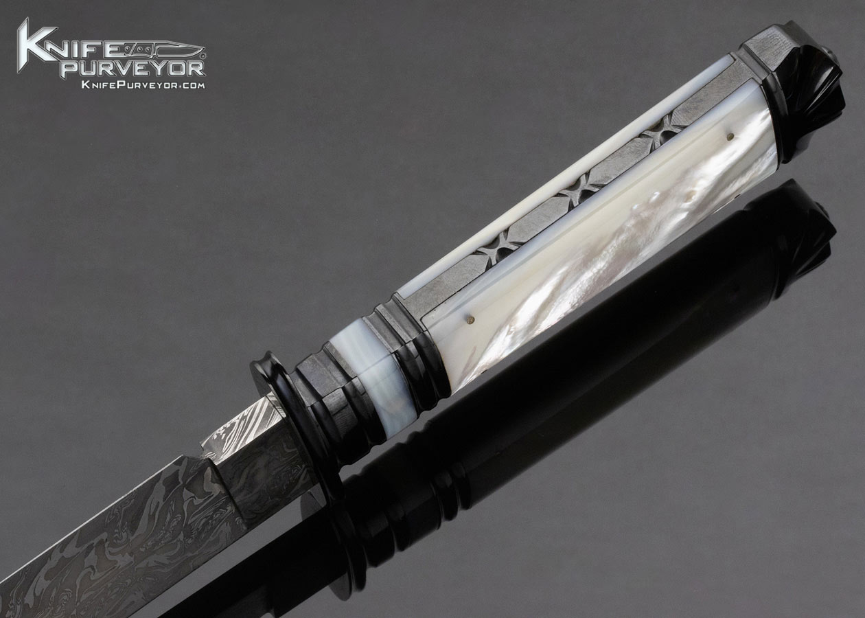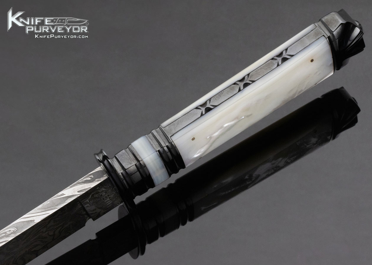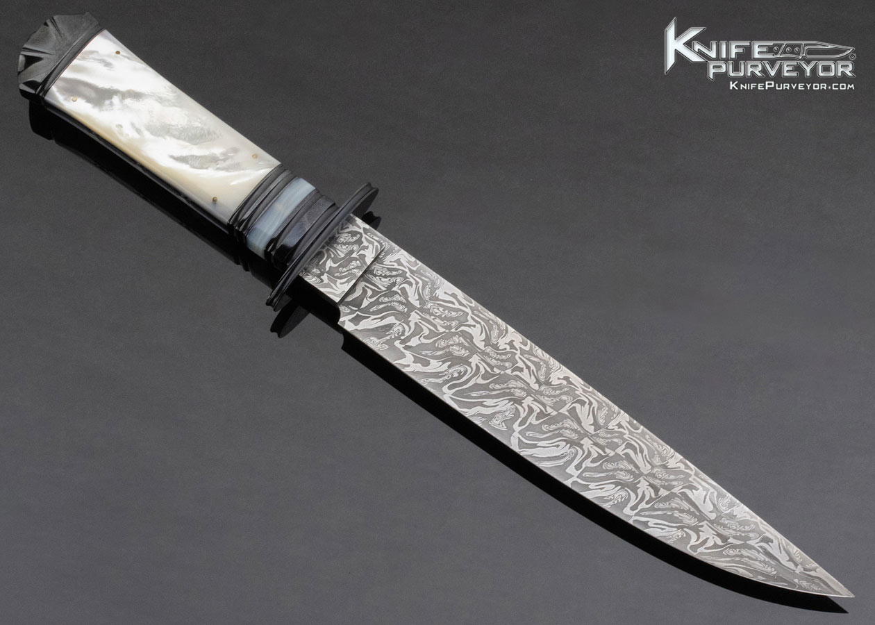 Steve Filicietti Custom Knife Damascus and Mother of Pearl Bowie with Blued Fittings