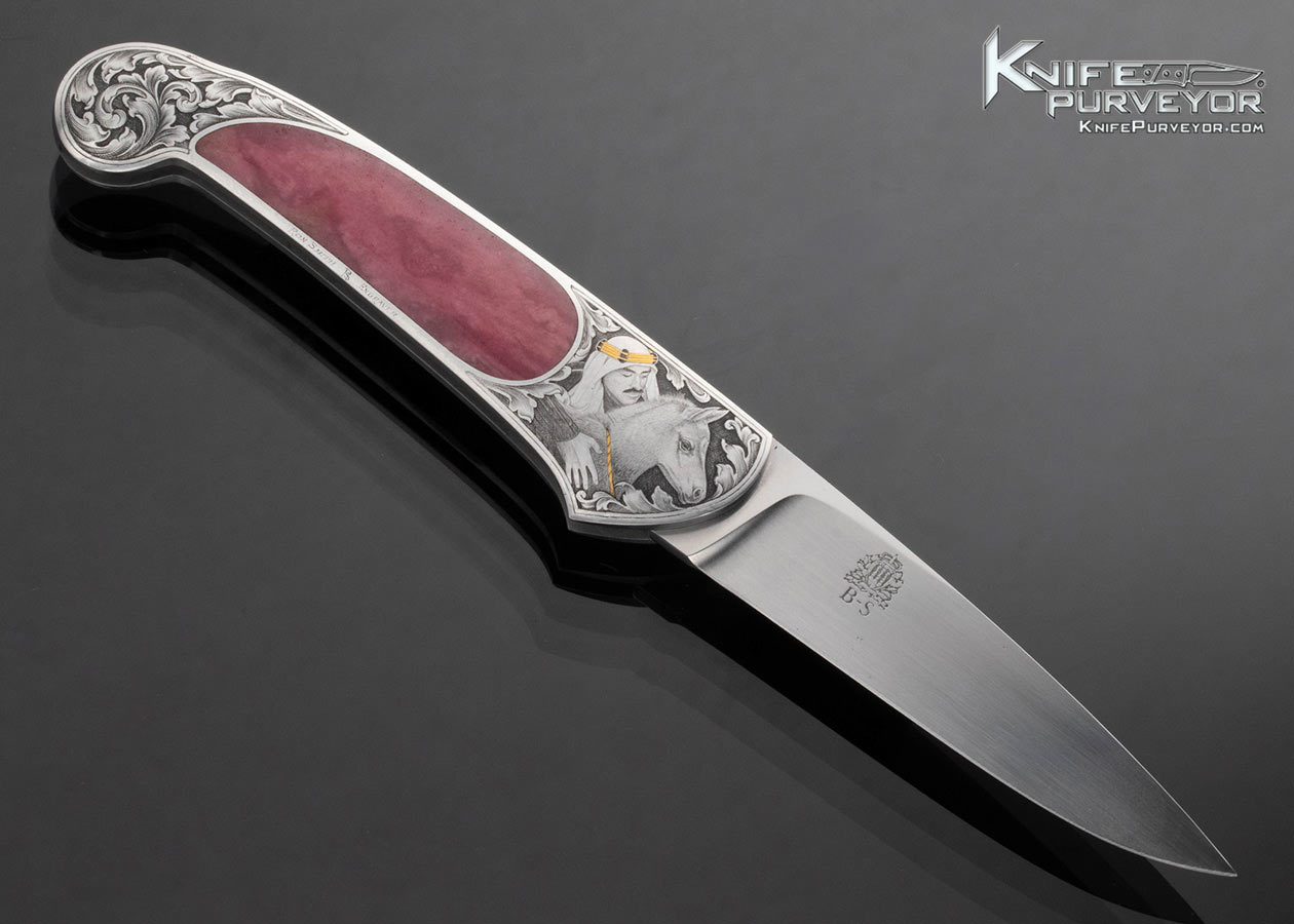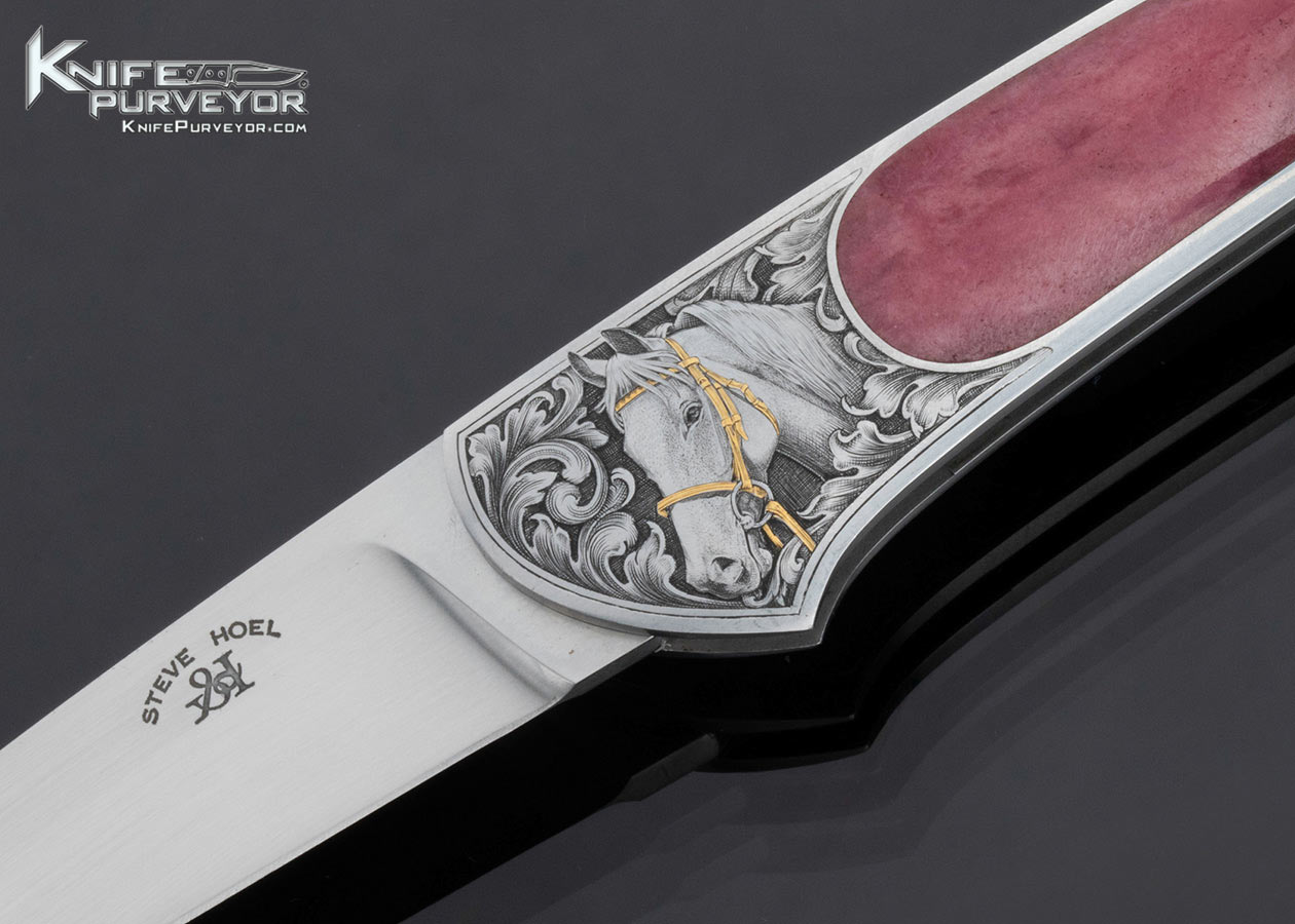 Steve Hoel Custom Knife Ron Smith Engraved Carnelian Interframe Lockback