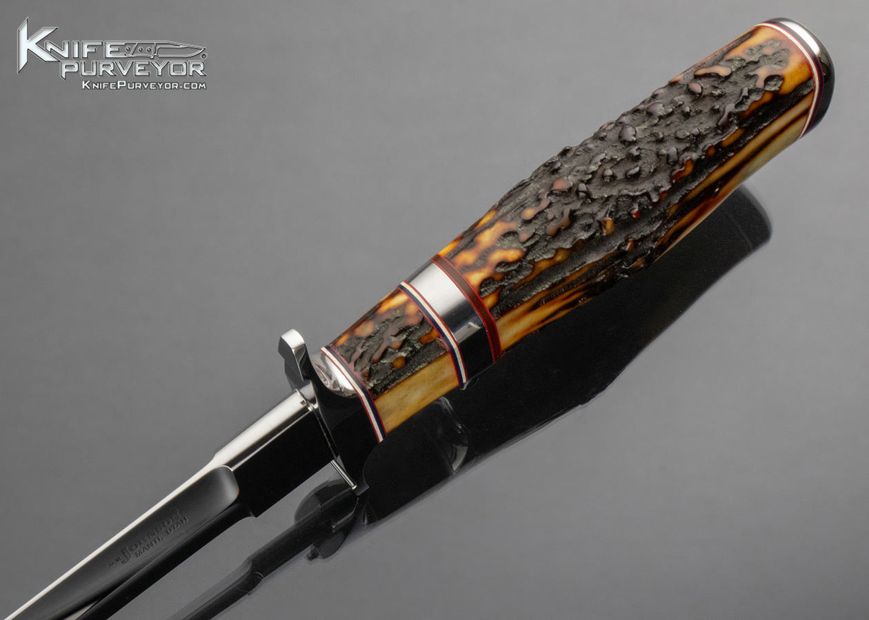 Steve Johnson Custom Knife Amber Stag Subhilt Fighter